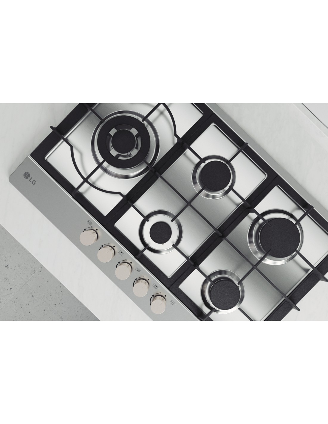 Il piano cottura è un elemento essenziale della tua cucina e contribuisce a darle carattere. Il piano cottura a gas di LG è stato progettato per arricchire il tuo arredamento con un design senza tempo ma deciso. Il piatto in acciaio inox è resistente e dona lucentezza, mentre le griglie in ghisa nere e le manopole in alluminio dorato impreziosiscono l'aspetto con un contrasto di forza e delicatezza.