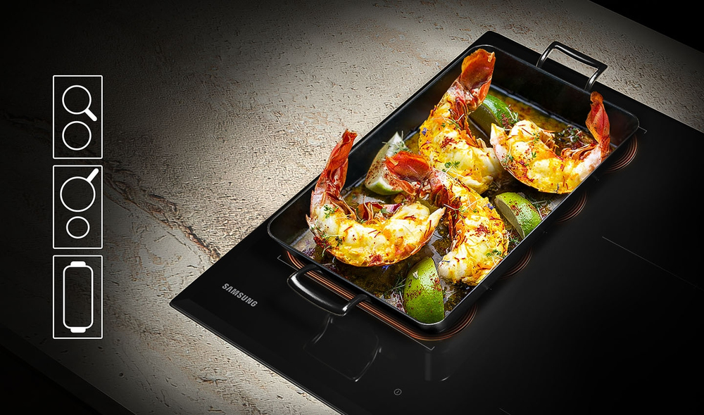 Risparmia tempo ed energia azionando la cappa e il piano cottura separatamente. La funzione Auto Connectivity ti permette di allinearne il funzionamento in modalità Wi-Fi. Grazie ai praticissimi comandi di tipo one-touch di cui è dotato il piano cottura*, puoi accendere o spegnere cappa e fornelli in un’unica operazione.* Funzione disponibile solo se il piano cottura viene usato in combinazione con una cappa Samsung Bluetooth.