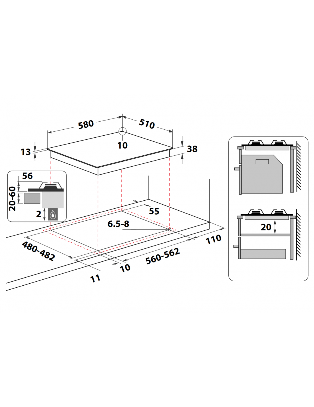 | Dimensione della larghezza del piano cottura | 60 cm |