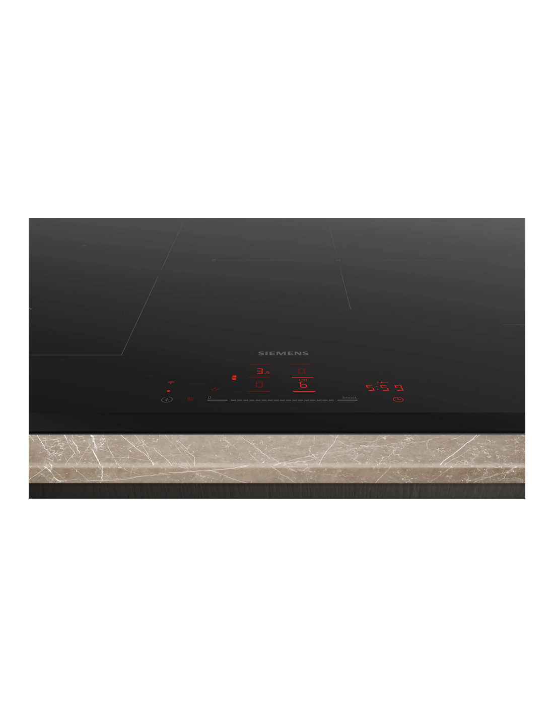 Siemens iQ500 ED851HSB1E. Colore del prodotto: Nero, Posizionamento dell'apparecchio: Da incasso, Dimensione della larghezza del piano cottura: 80 cm. Tipo di controllo: Touch, Posizione di controllo: Front / Top front. Potenza aggregata (elettrica): 7400 W, Tensione di ingresso AC: 220-240 V, Frequenza di ingresso AC: 50-60 Hz. Tecnologie Siemens (cottura): Home Connect. Larghezza: 802 mm, Profondità: 522 mm, Altezza: 51 mm