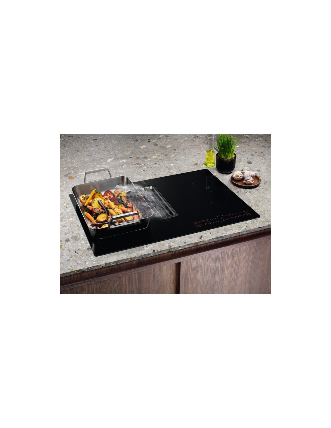 I piani cottura a induzione Electrolux EcoLine con aspirazione integrata sono selezionati in base alla classe energetica più alta.