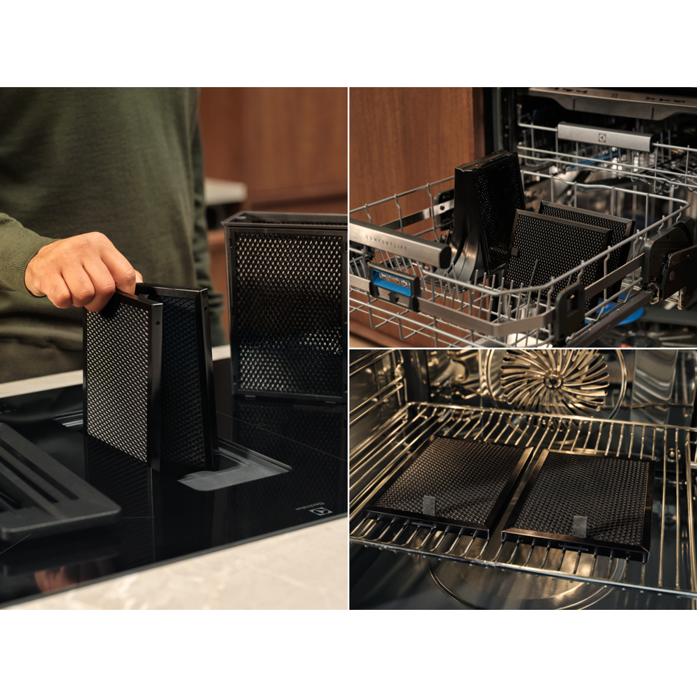 Il filtro antigrasso e il filtro OdourClean Plus sono facili da lavare in lavastoviglie: in questo modo, la ventola funziona meglio più a lungo e l'aria della cucina resta fresca e pulita. I filtri a carbone possono essere rigenerati fino a 8 volte e durare fino a 3 anni.