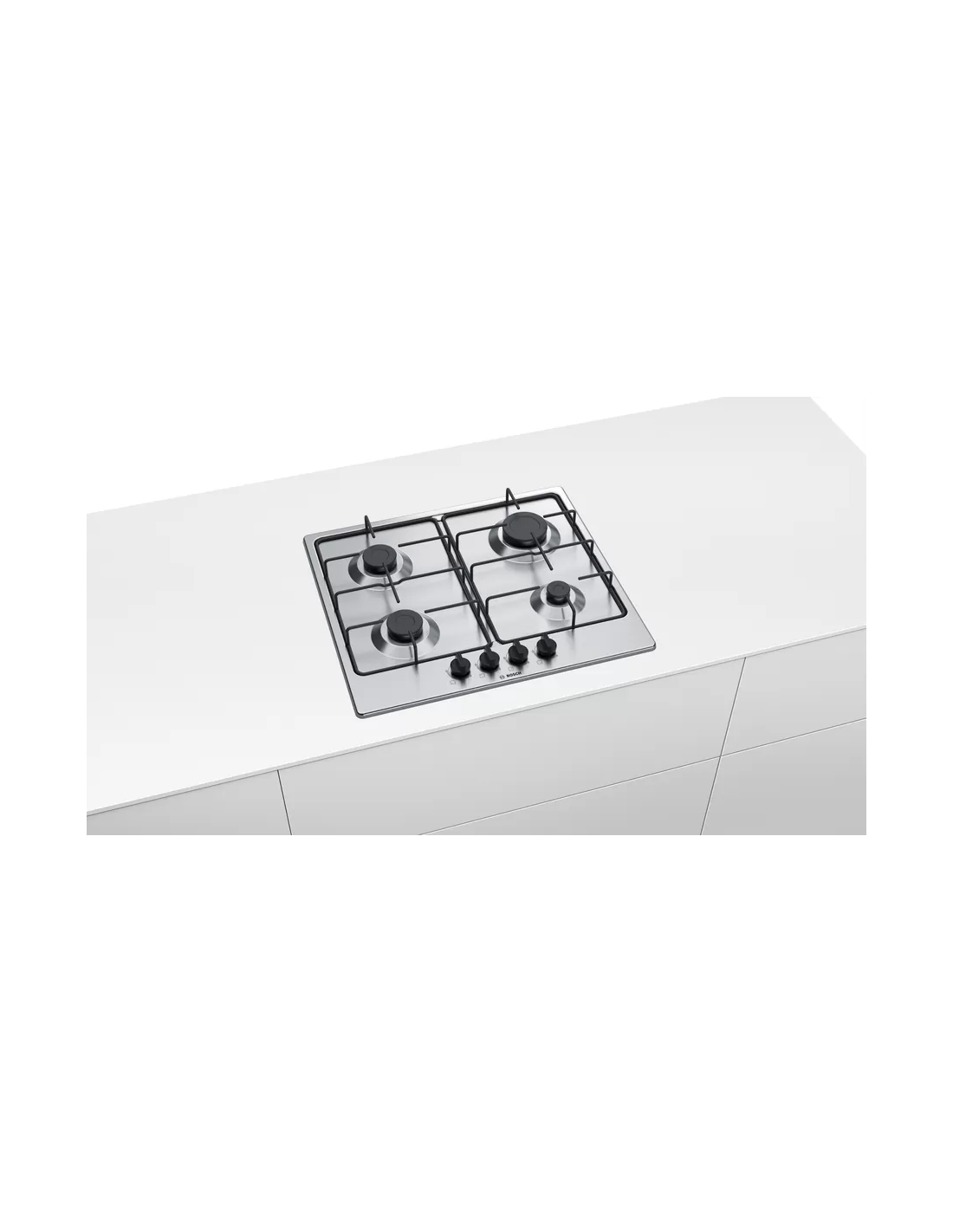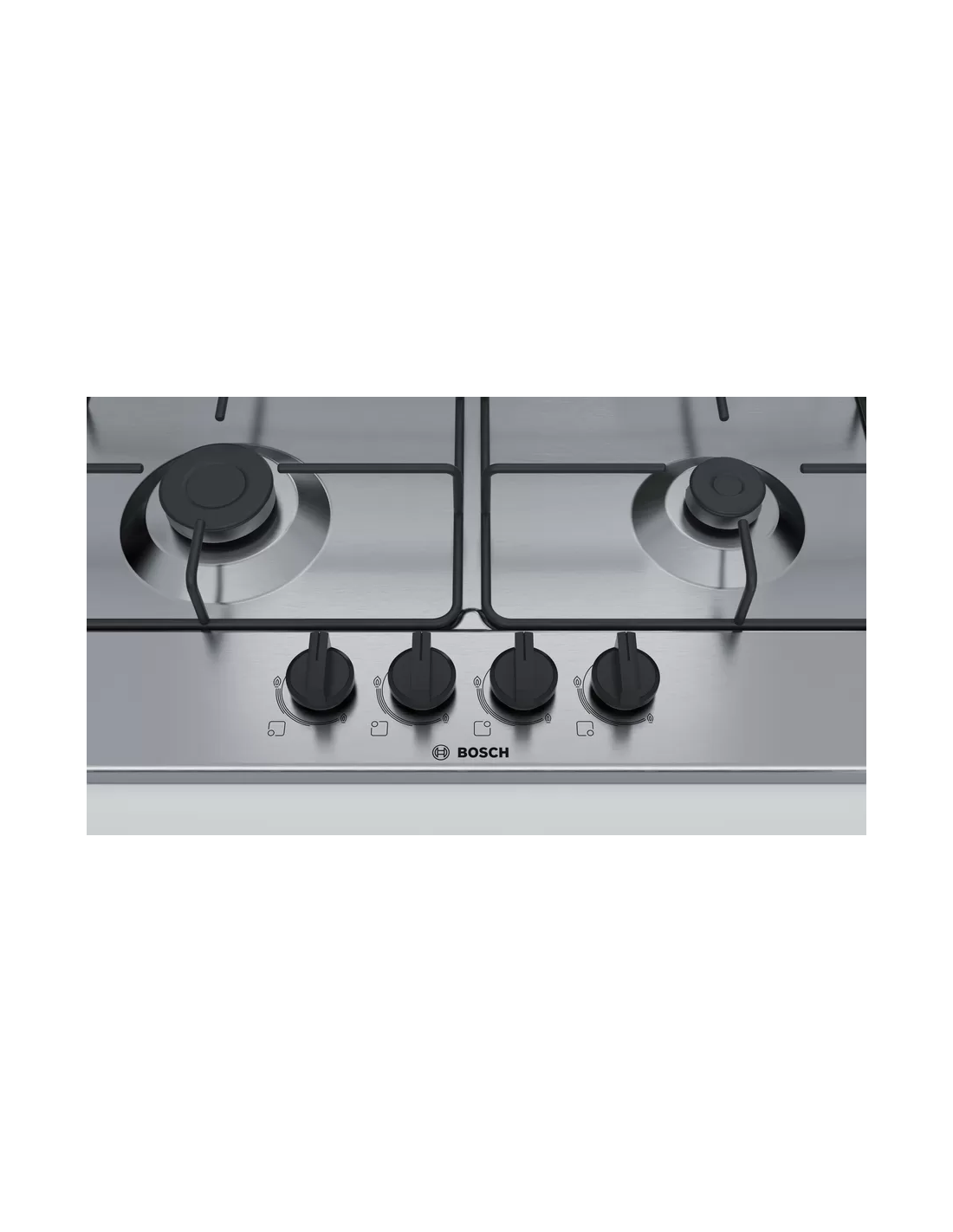 Bosch Serie 4 PGP6B5B86. Colore del prodotto: Acciaio inox, Posizionamento dell'apparecchio: Da incasso, Dimensione della larghezza del piano cottura: 60 cm. Bruciatore piccolo: 1000 W, Bruciatore medio: 1750 W, Bruciatore grande: 3000 W. Tipo di controllo: Manopola, Posizione di controllo: Frontale. Potenza aggregata (gas): 7500 W, Tensione di ingresso AC: 220-240 V, Frequenza di ingresso AC: 50-60 Hz. Larghezza: 582 mm, Profondità: 520 mm, Altezza: 53 mm
