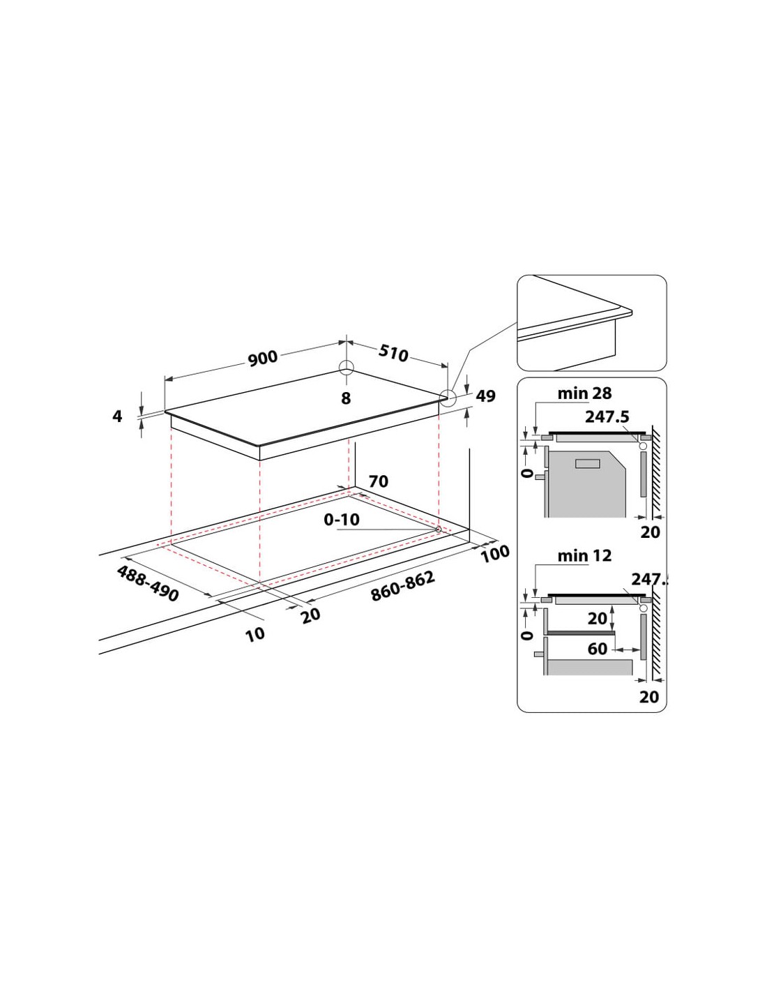 - Dimensione della larghezza del piano cottura