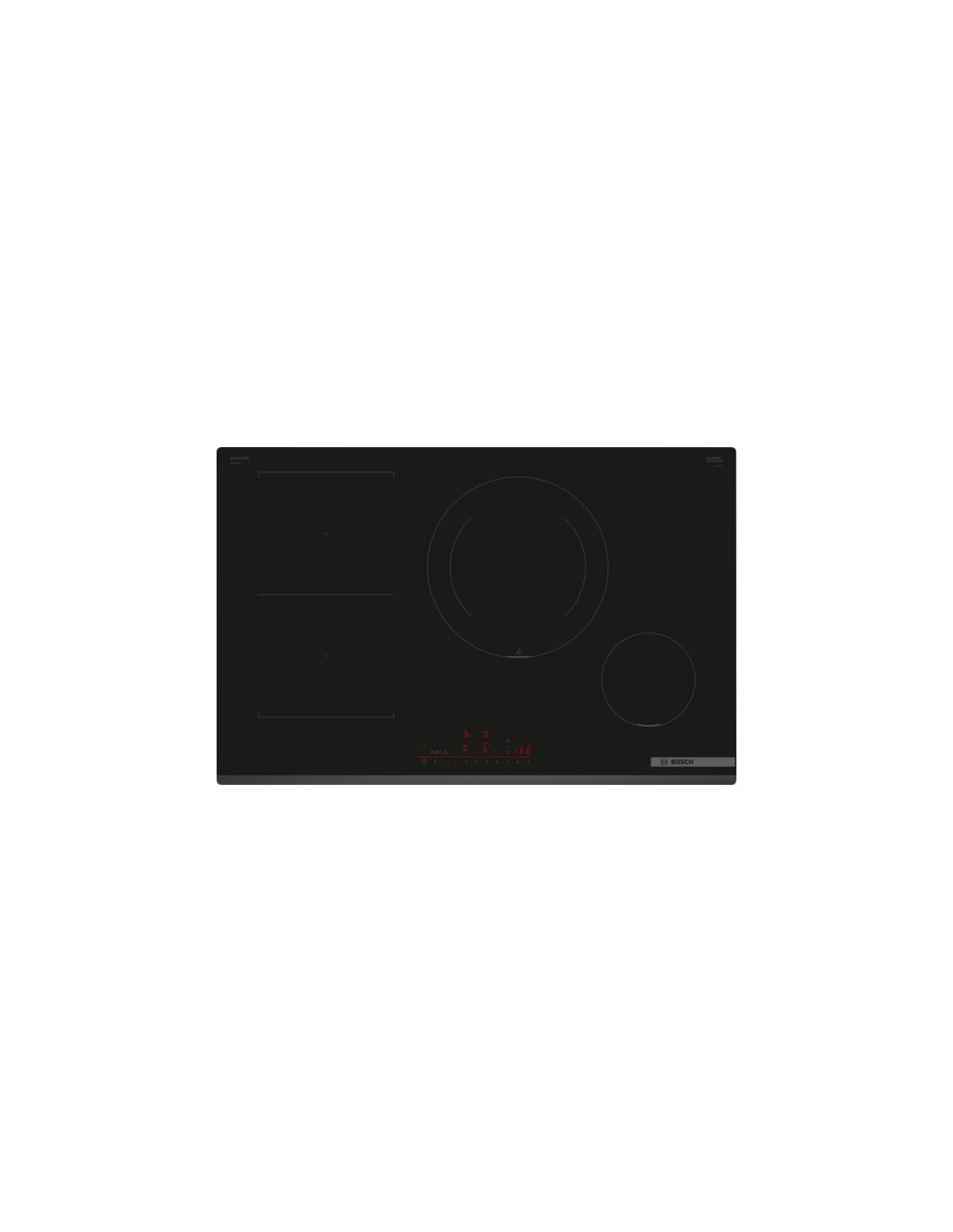 Bosch Serie 6 PVS831HC1E. Colore del prodotto: Nero, Posizionamento dell'apparecchio: Da incasso, Dimensione della larghezza del piano cottura: 80 cm. Tipo di controllo: Touch, Posizione di controllo: Frontale, Tipo di display: LED. Potenza aggregata (elettrica): 7400 W, Tensione di ingresso AC: 220-240 V, Frequenza di ingresso AC: 50-60 Hz. Applicazioni per il controllo supportate: Home Connect. Tecnologie Bosch (cottura): DirectSelect, Home Connect, PerfectFry