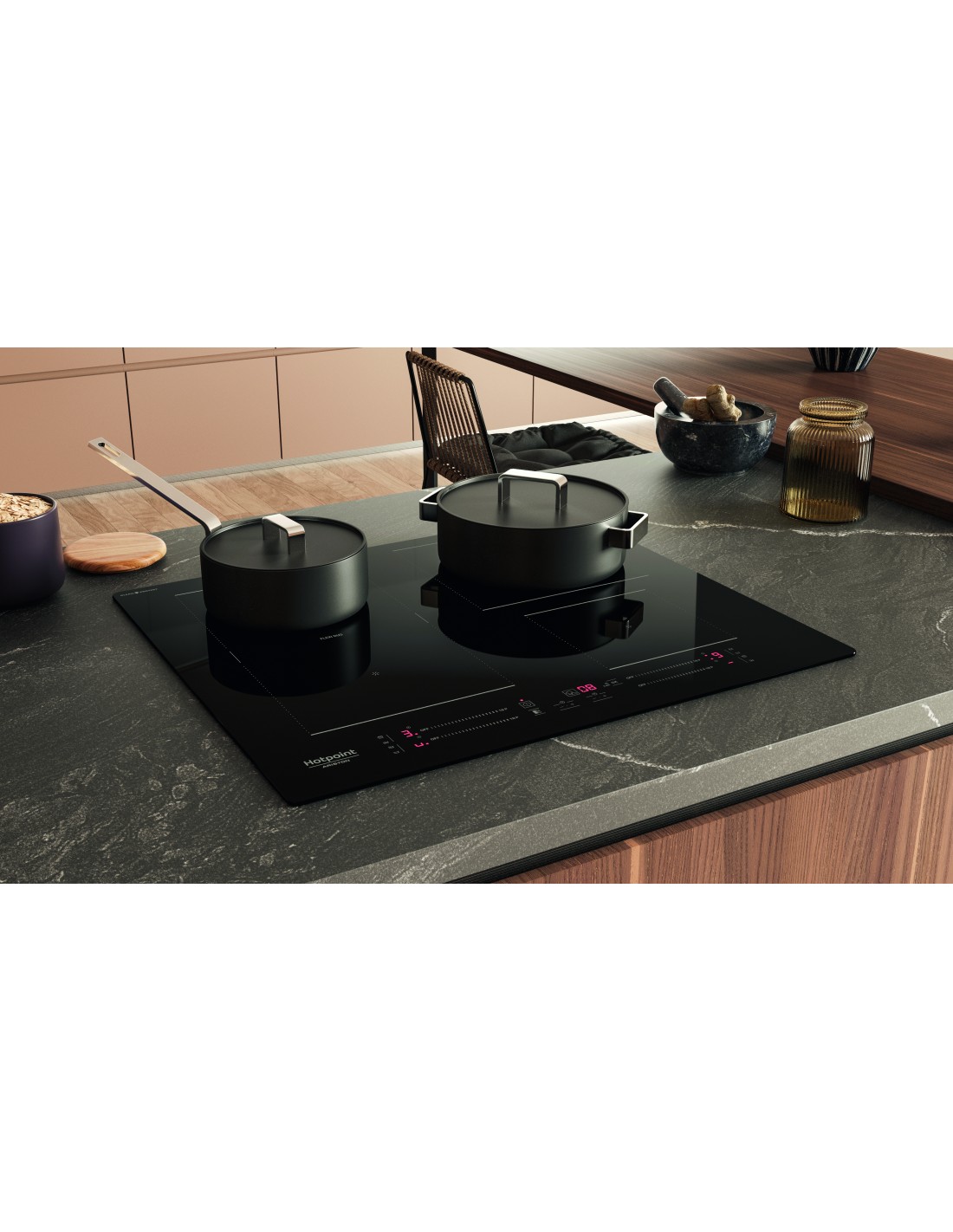 Hotpoint Ariston HS 4960C CPNE. Colore del prodotto: Nero, Dimensione della larghezza del piano cottura: 59 cm, Tipo di piano cottura: Piano cottura a induzione. Tipo di controllo: Touch, Posizione di controllo: Frontale. Potenza aggregata (elettrica): 7200 W, Tensione di ingresso AC: 220-240 V, Frequenza di ingresso AC: 50 - 60 Hz. Larghezza: 590 mm, Profondità: 510 mm, Altezza: 54 mm