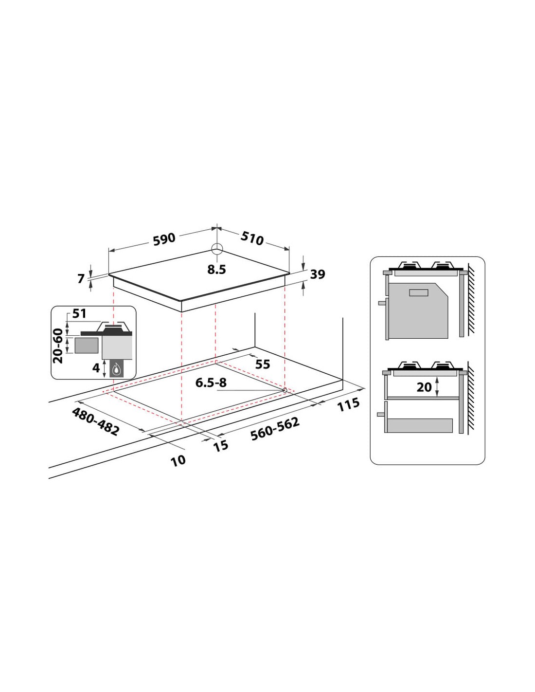 | Dimensione della larghezza del piano cottura | 59 cm |