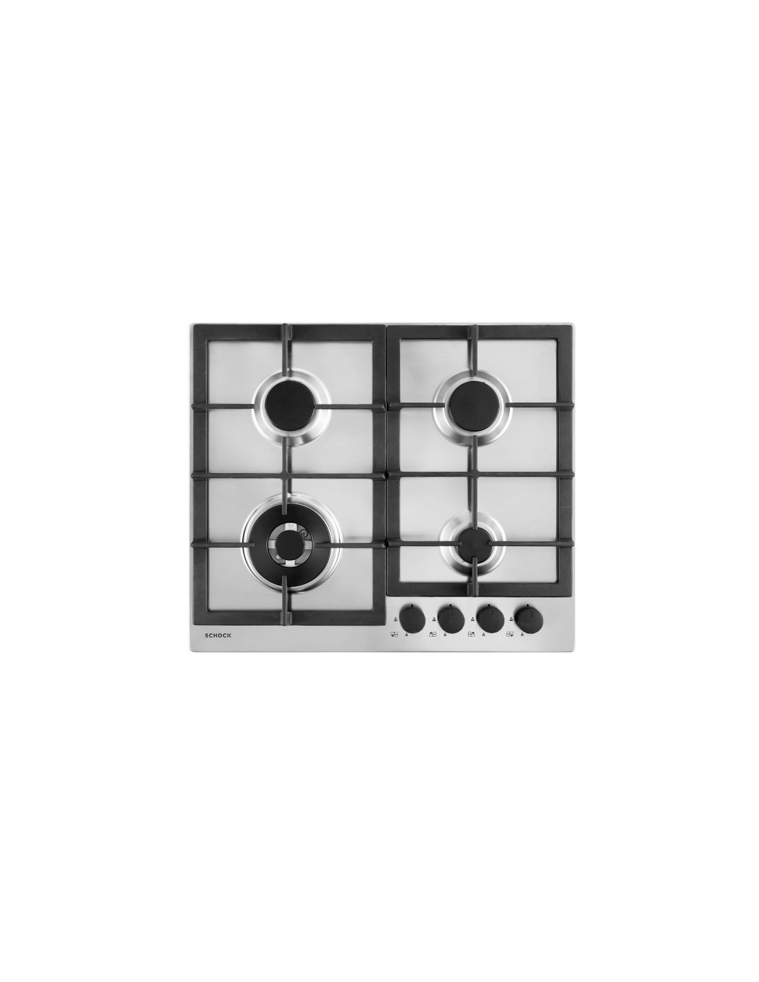 Schock STR64THIX. Colore del prodotto: Grigio, Posizionamento dell'apparecchio: Da incasso, Dimensione della larghezza del piano cottura: 60 cm. Tipo di controllo: Manopola, Posizione di controllo: In alto a destra / a sinistra, Tipo di accensione elettronica: Accensione con manopola. Larghezza: 585 mm, Profondità: 500 mm, Larghezza del compartimento: 56 cm