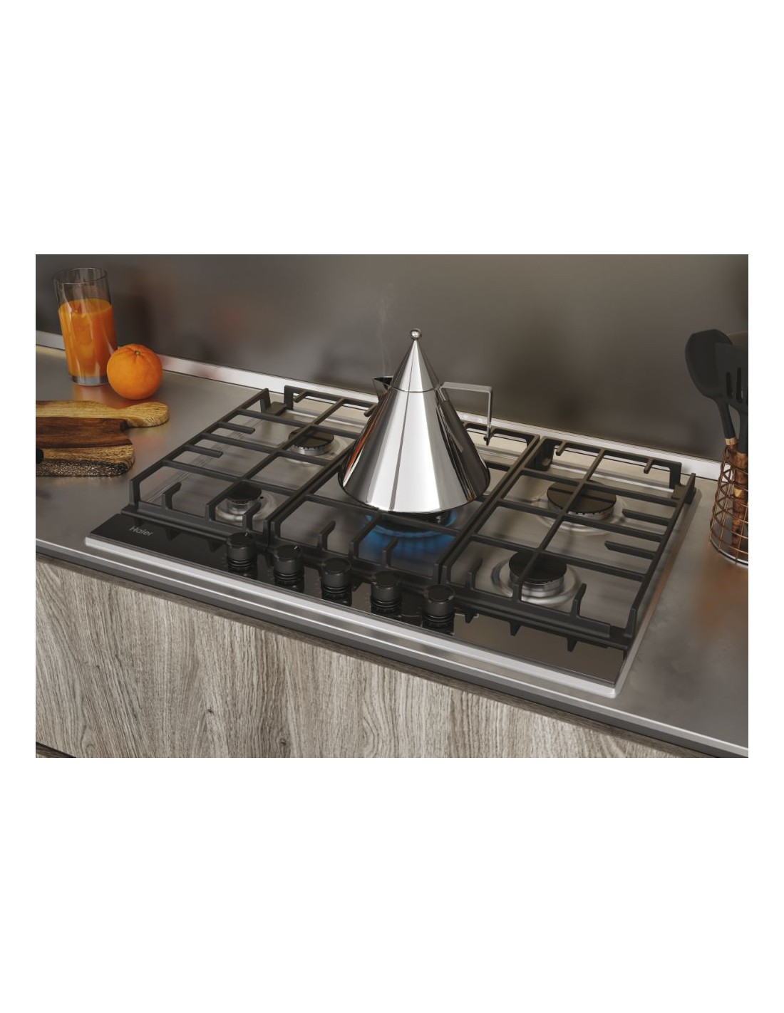 Grazie all'aggiunta di un inserto in vetro, trasforma un semplice piano cottura in acciaio inossidabile in un elegante elettrodomestico da cucina con una finitura premium.