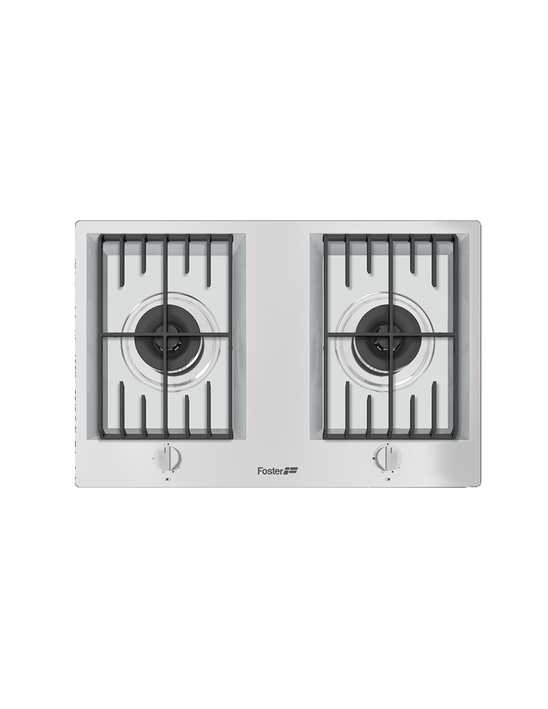 Foster FL 2F.STD. Colore del prodotto: Acciaio inox, Posizionamento dell'apparecchio: Da incasso, Tipo di piano cottura: Gas. Bruciatore extra large ad alta velocità: 5000 W. Tipo di controllo: Manopola, Posizione di controllo: Frontale superiore. Potenza aggregata (gas): 10000 W. Larghezza: 760 mm, Profondità: 500 mm, Larghezza del compartimento: 74 cm