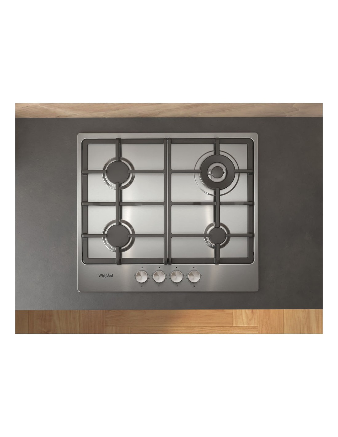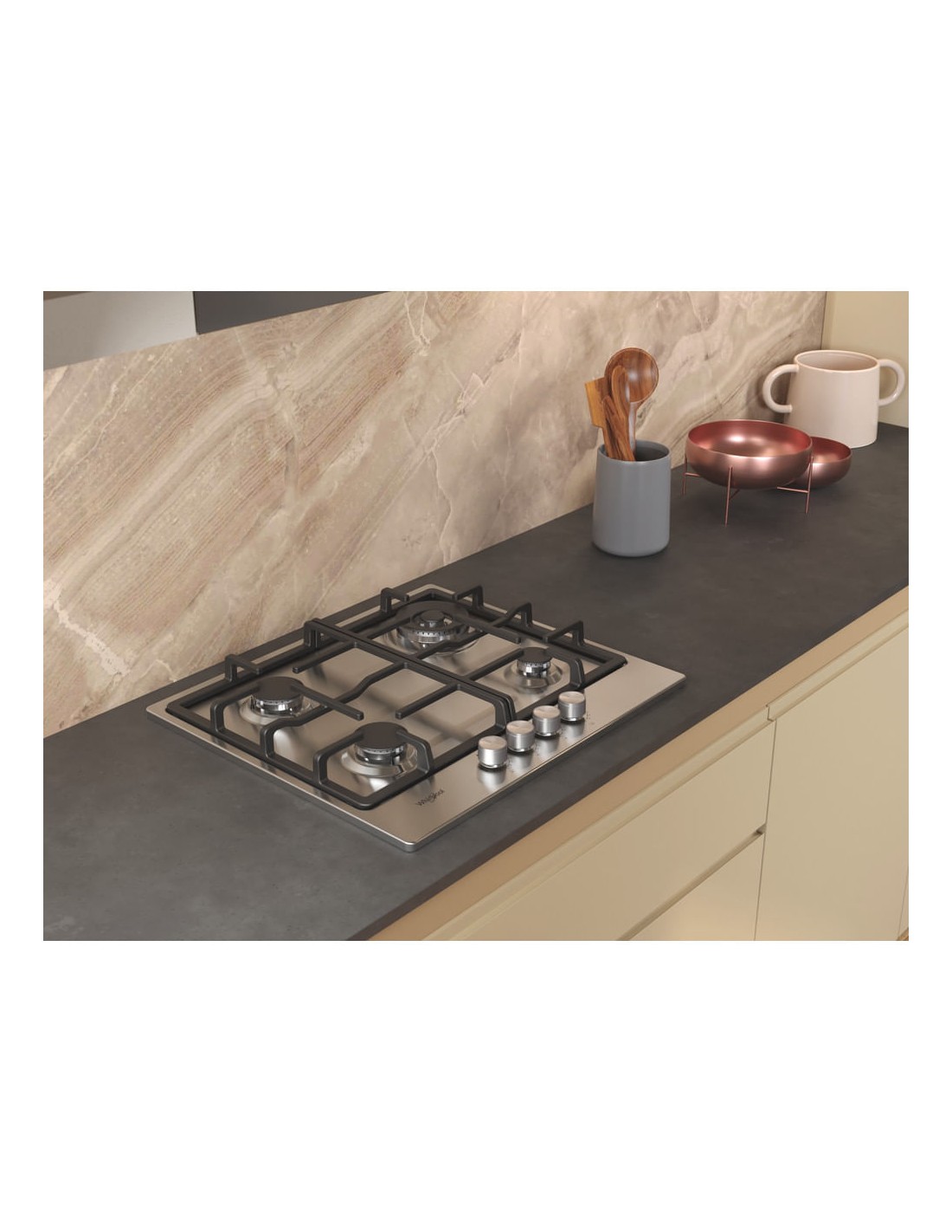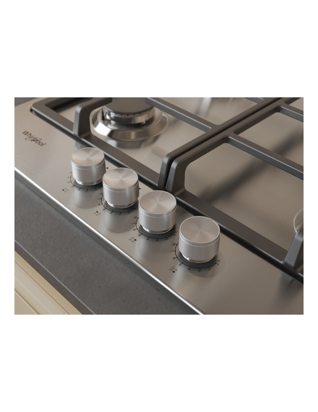 Whirlpool TGML 661 IX. Colore del prodotto: Acciaio inox, Posizionamento dell'apparecchio: Da incasso, Dimensione della larghezza del piano cottura: 58 cm. Tipo di controllo: Manopola, Posizione di controllo: Frontale. Potenza aggregata (gas): 7800 W, Tensione di ingresso AC: 220-240 V, Frequenza di ingresso AC: 50 - 60 Hz. Larghezza: 580 mm, Profondità: 510 mm, Altezza: 38 mm