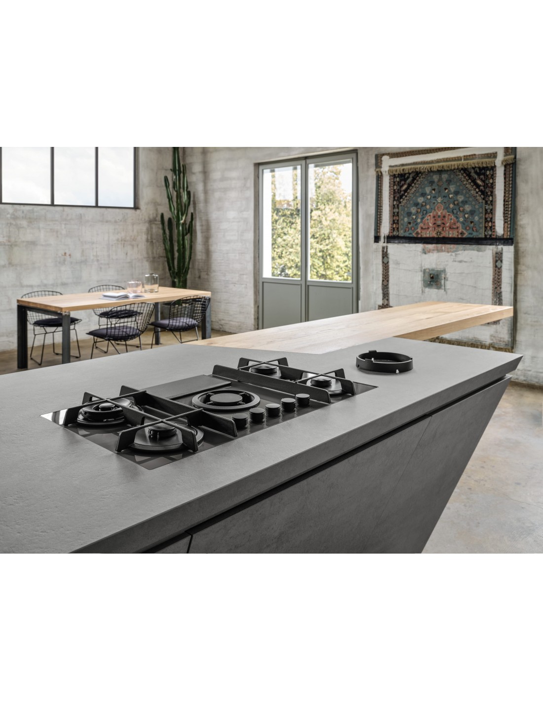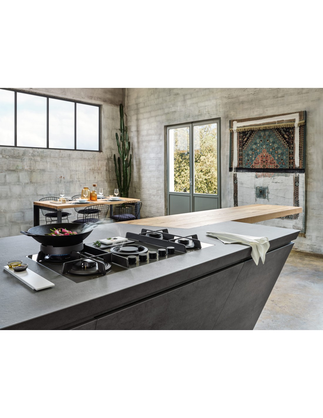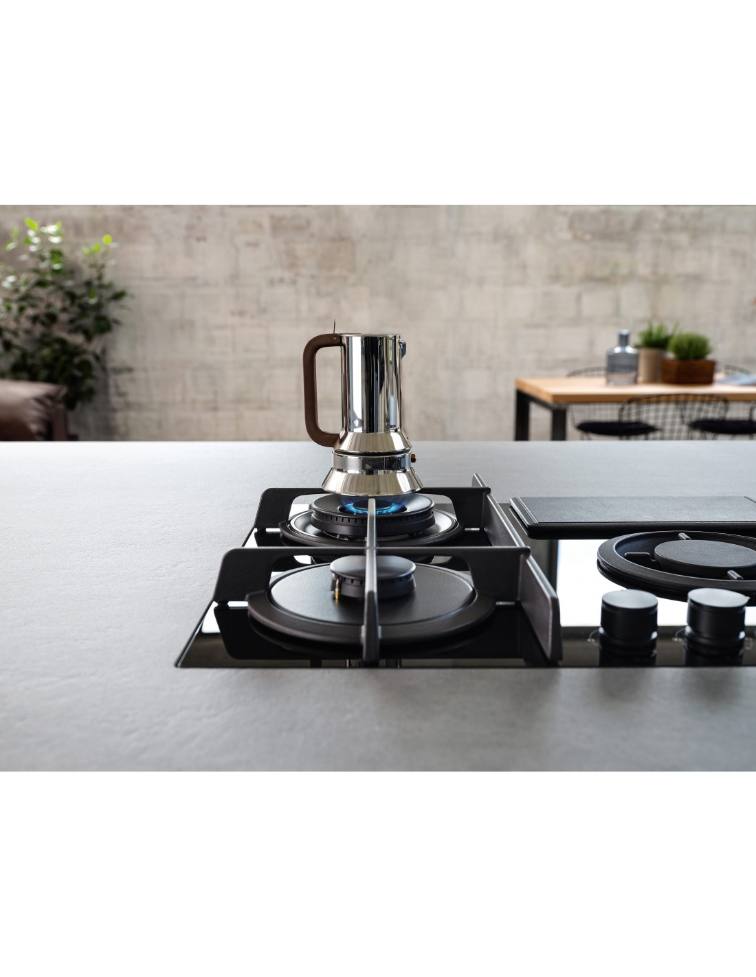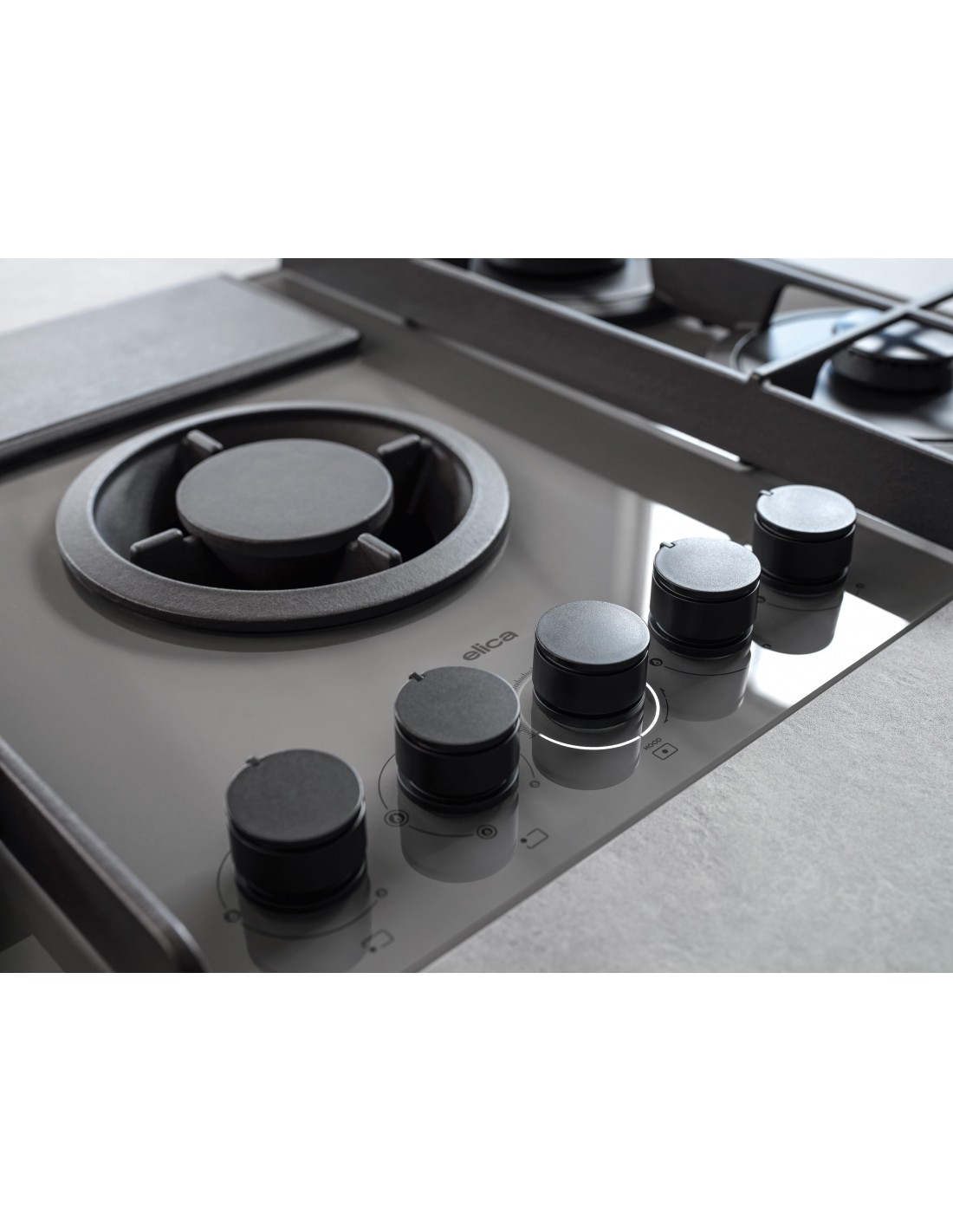 La magia del fuoco, le prestazioni della tecnologia. È arrivato il primo piano aspirante a gas che combina l’aspirazione dal basso ai classici fornelli. In massima sicurezza: questo elettrodomestico rispetta tutte le normative in termini di rendimento e potenza della fiamma, senza rinunciare a prestazioni superiori. Gli elementi in ghisa coniugano estetica e funzionalità e le griglie a croce, chiuse e piatte, garantiscono stabilità alle pentole e facilità nello spostamento sul piano cottura. La copertura della zona filtri in ghisa diventa un originale piano di appoggio; il supporto opzionale wok aumenta le possibilità delle varianti di cottura. Il sistema di aspirazione integrato libera l’aria da fumi e cattivi odori, anche automaticamente, grazie al filtro combinato anti-grassi, anti-odori e anti-umidità che vi garantisce massima efficacia e facilità di manutenzione.