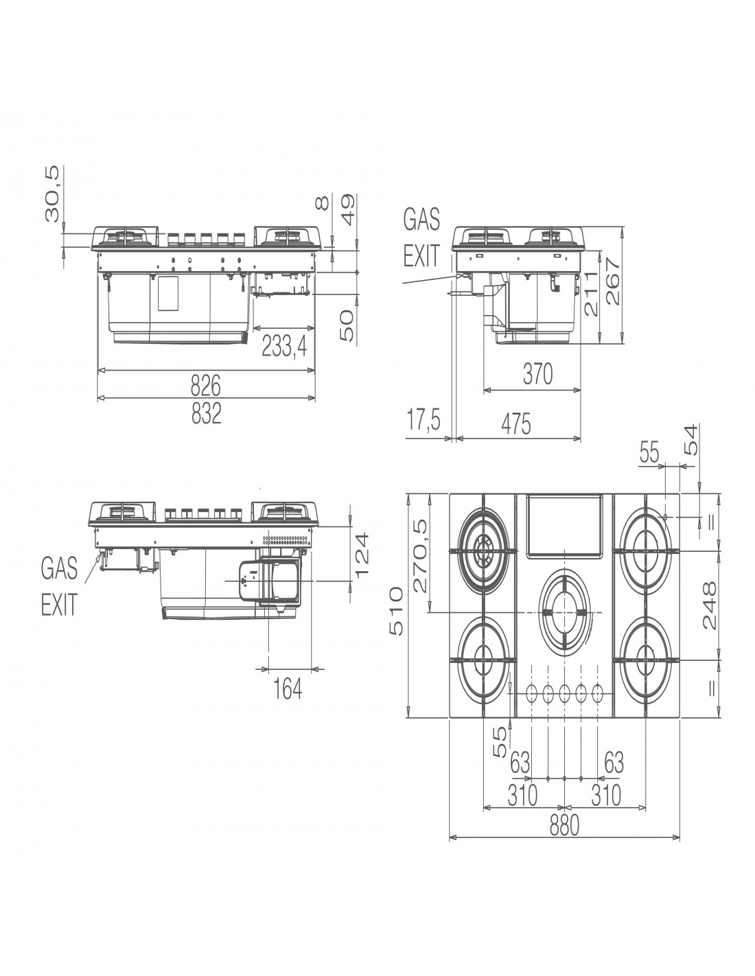 | Dimensione della larghezza del piano cottura | 88 cm |
