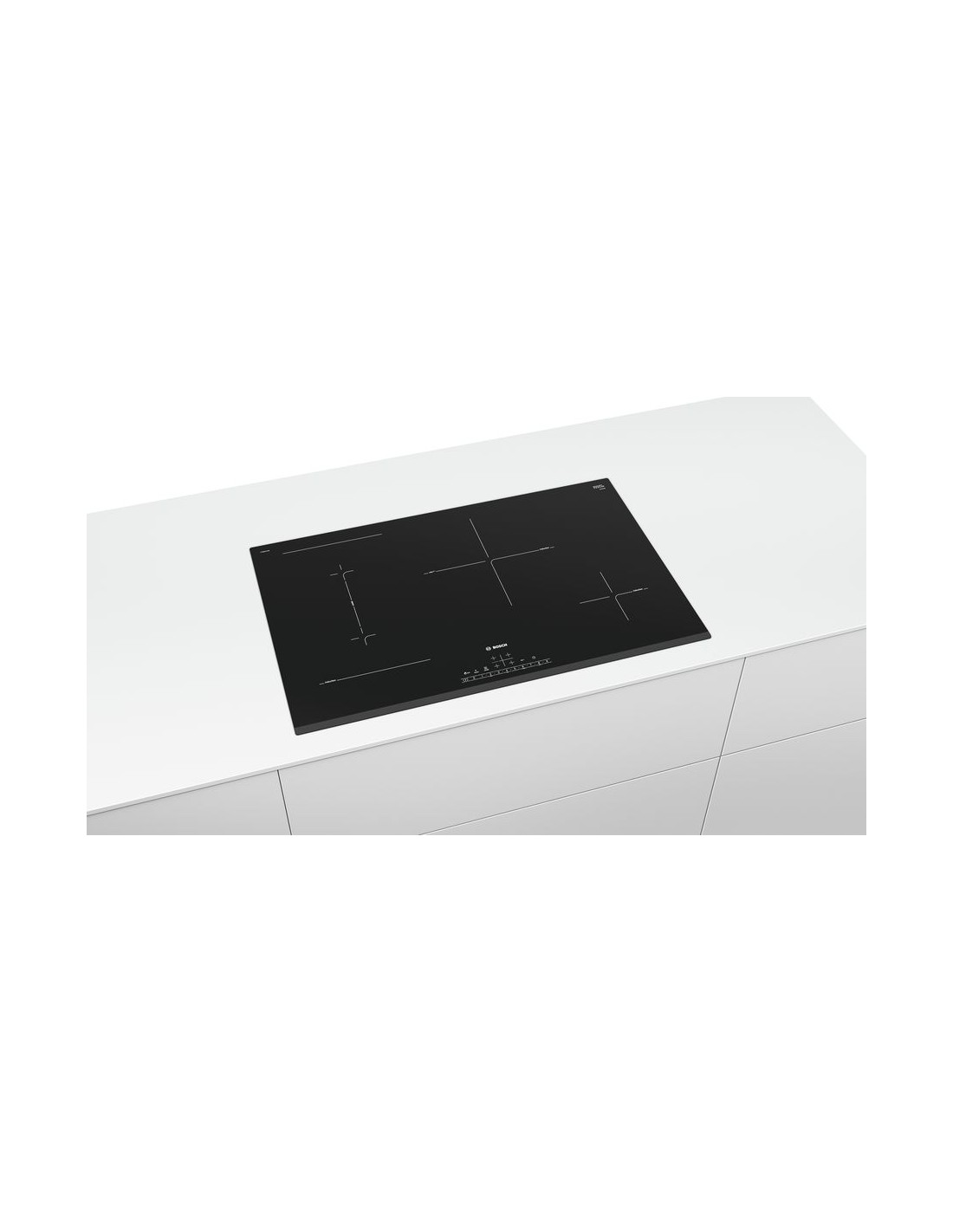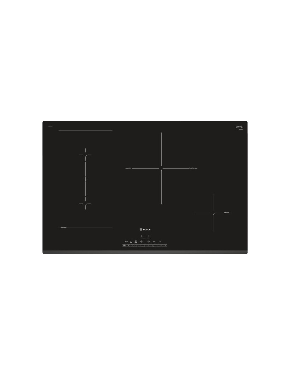 Bosch Serie 6 PVS831FC5E. Colore del prodotto: Nero, Posizionamento dell'apparecchio: Da incasso, Tipo di piano cottura: Piano cottura a induzione. Certificazione: CE. Tipo di controllo: Touch, Posizione di controllo: Frontale superiore, Tipo di orologio: Elettronico. Potenza aggregata (elettrica): 7400 W, Tensione di ingresso AC: 220 - 240 V, Frequenza di ingresso AC: 50 - 60 Hz. Larghezza: 802 mm, Profondità: 522 mm, Altezza: 51 mm