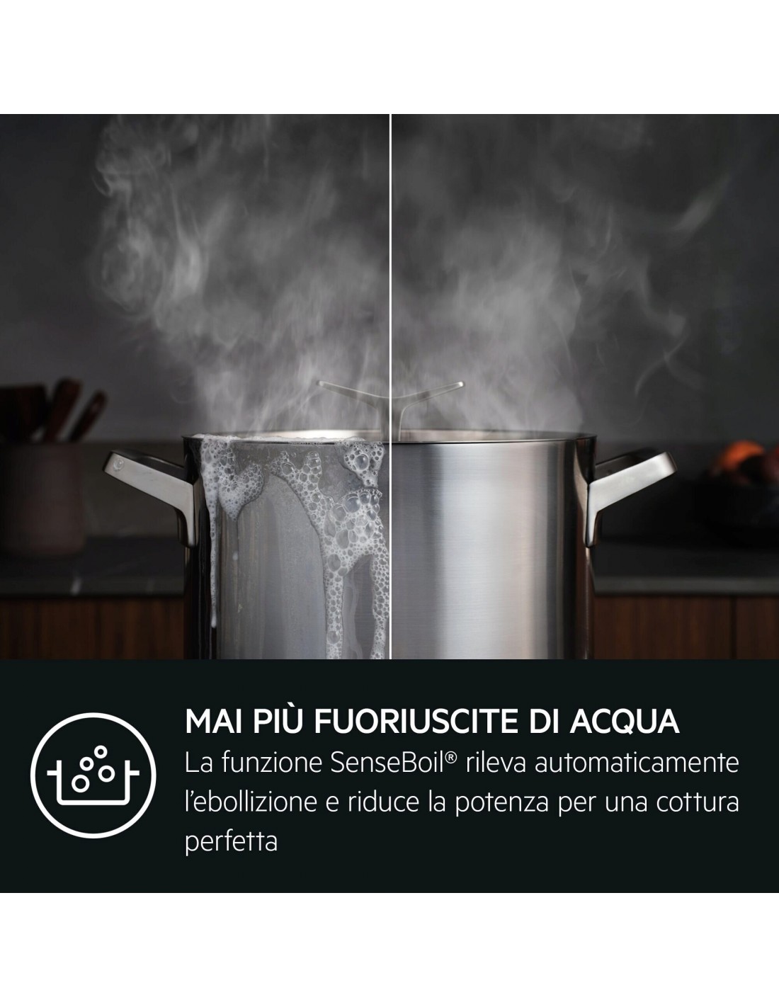 SenseBoil & Fry: i sensori di cottura intelligenti sono l’assistente perfetto in cucina. Il fornello si regola automaticamente alla giusta temperatura e impedisce la bollitura eccessiva, sia che si tratti di friggere le uova o di cuocere a fuoco lento uno stufato.
