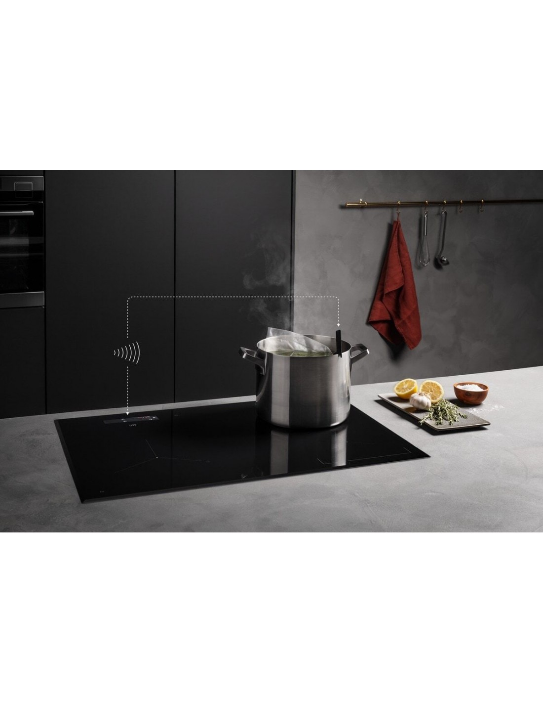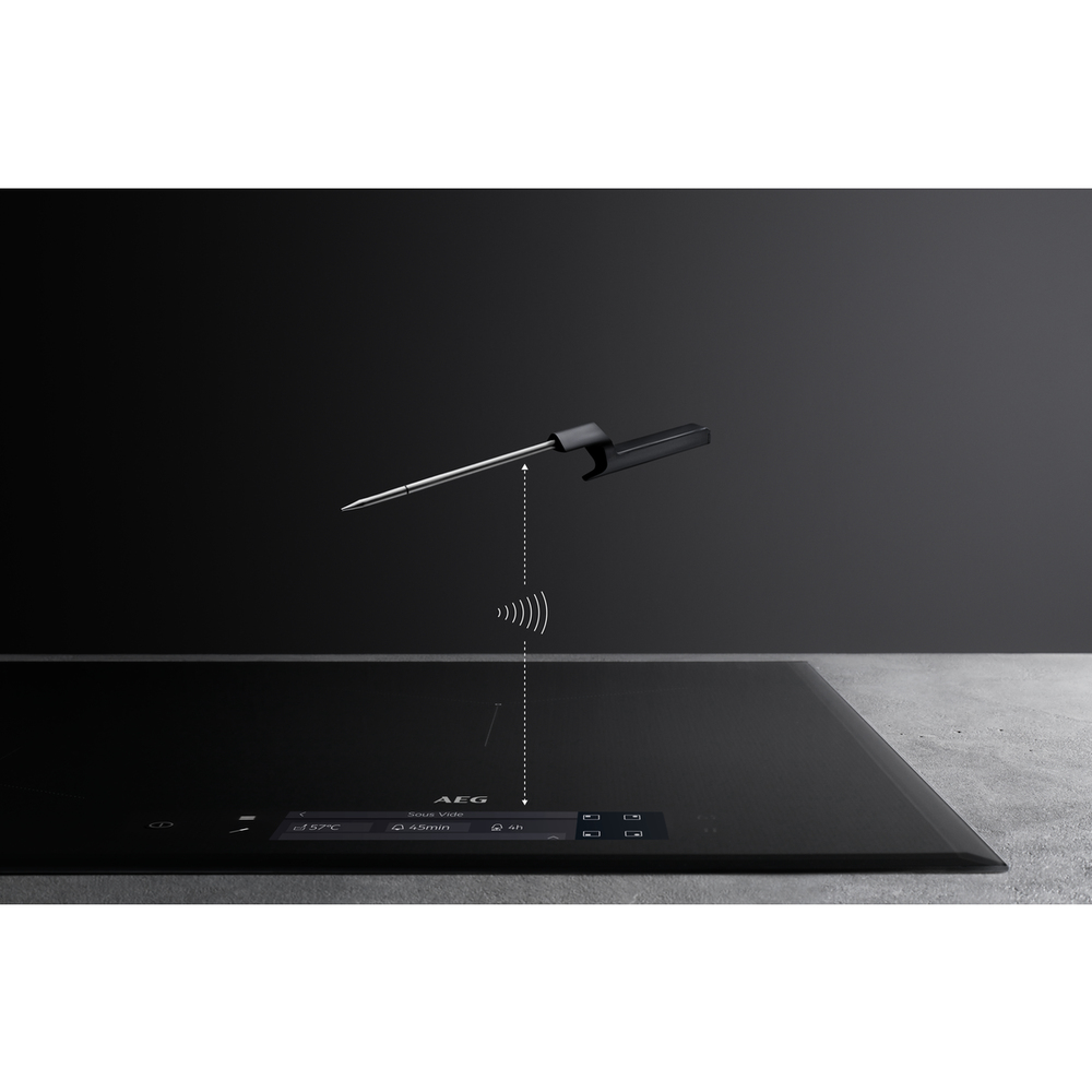 Padroneggia ogni piatto con la termosonda wireless. Il sensore identifica le temperature con precisione e comunica le variazioni necessarie al piano cottura. La misurazione della temperatura e la sua regolazione sono così precise che puoi addirittura usare la tecnica del sottovuoto.