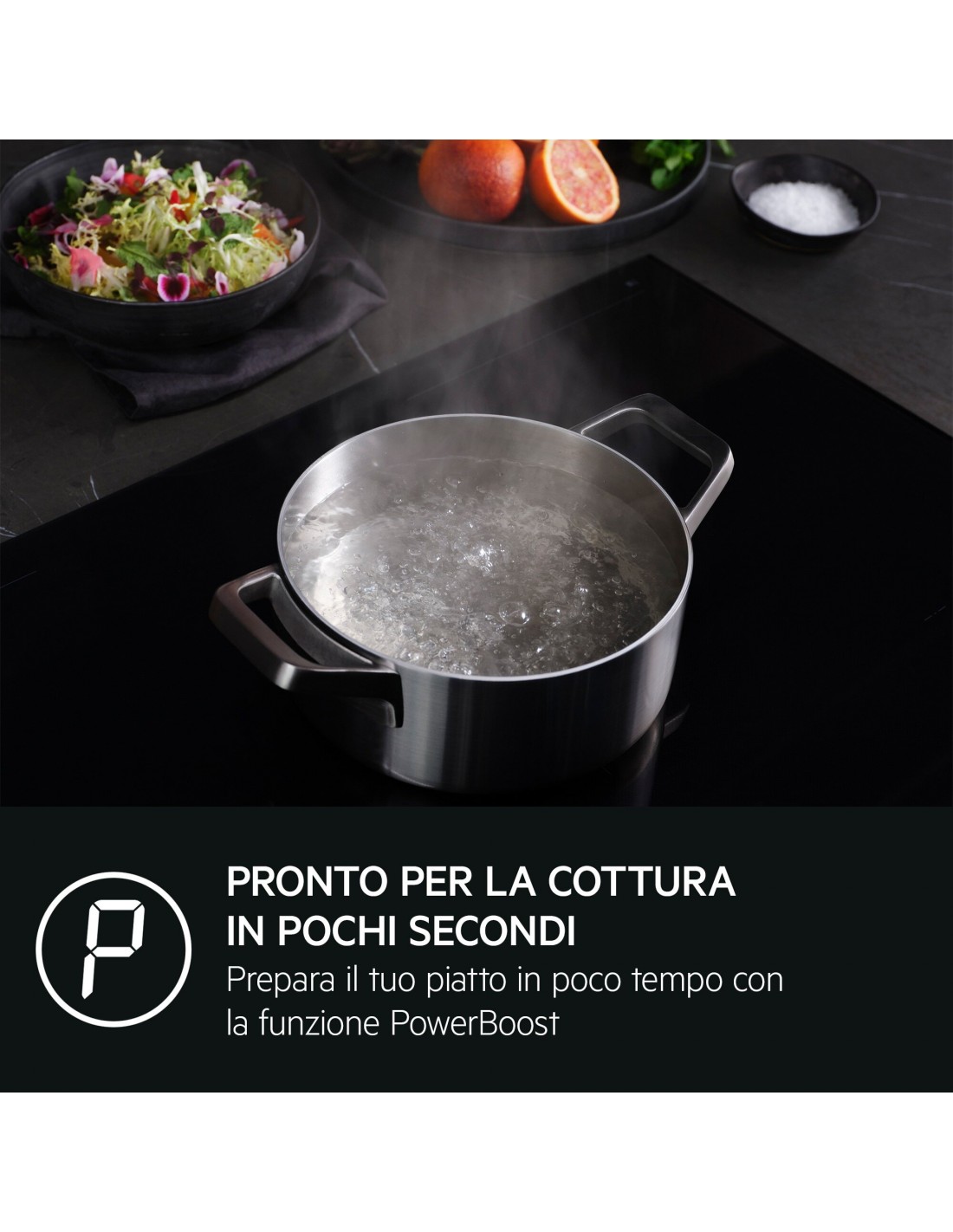 La funzione PowerBoost fornisce un’esplosione di calore istantanea per preparare i piatti in pochissimo tempo. Ideale per far bollire velocemente l’acqua, saltare in padella le verdure o scottare il pesce o la carne.