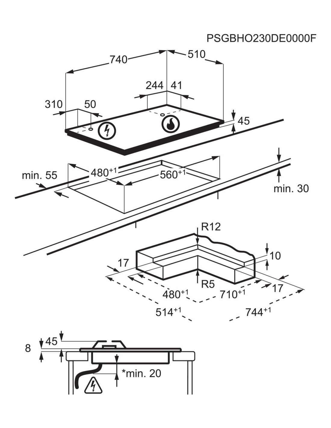 | Diametro del fornello/zona cottura 5 | 63 mm |