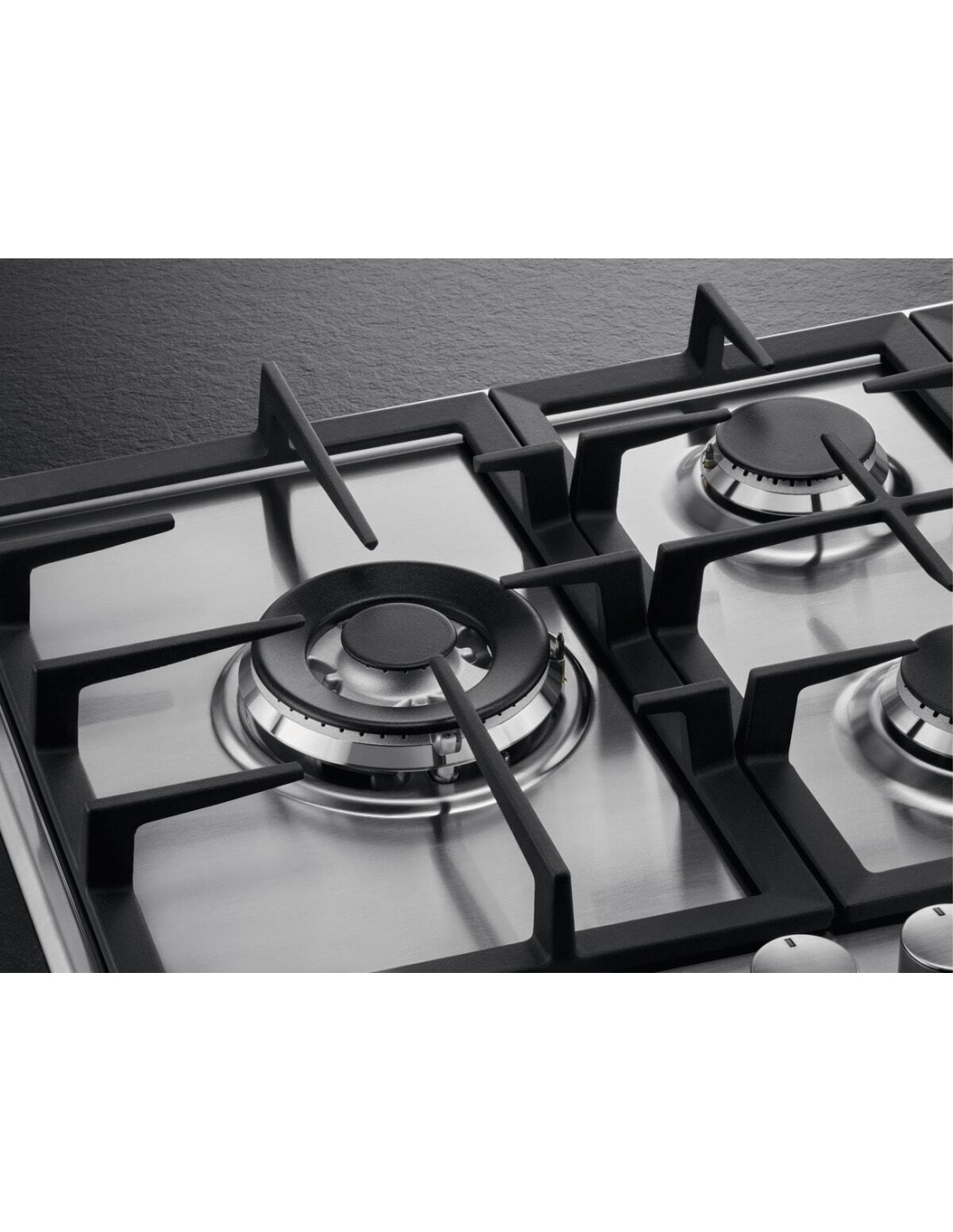 Aggiungi un tocco professionale alla tua cucina con questo piano dotato di griglie in ghisa, eleganti e facili da pulire.