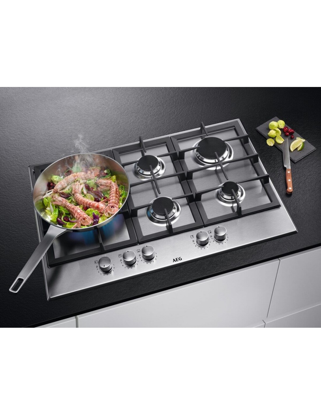 Il design dei bruciatori Speed Burner di questo piano AEG consentono alla fiamma di indirizzare il calore direttamente sul fondo della padella, scaldandola più velocemente e con maggior efficienza.