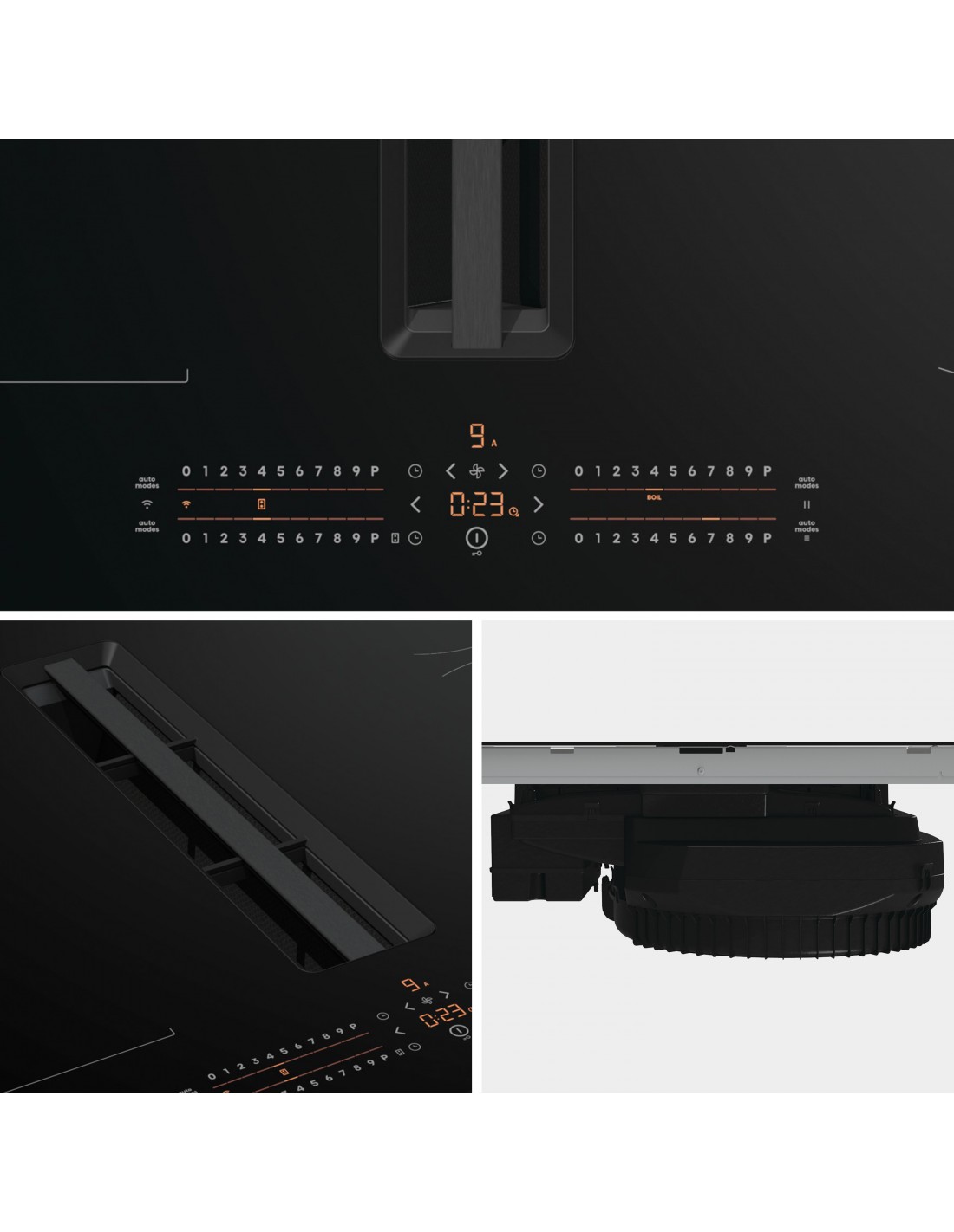 Hisense HEH8432BSCWF. Colore del prodotto: Nero, Posizionamento dell'apparecchio: Da incasso, Dimensione della larghezza del piano cottura: 83 cm. Tipo di controllo: Barra di scorrimento, Touch, Posizione di controllo: Front / Top front, Tipo di display: LED. Tipo di estrazione: Filtrante, Potenza massima di estrazione: 458 m³/h, Potenza motore: 175 W. Potenza aggregata (elettrica): 7360 W, Tensione di ingresso AC: 220-240 V, Frequenza di ingresso AC: 50 Hz. Applicazioni per il controllo supportate: ConnectLife