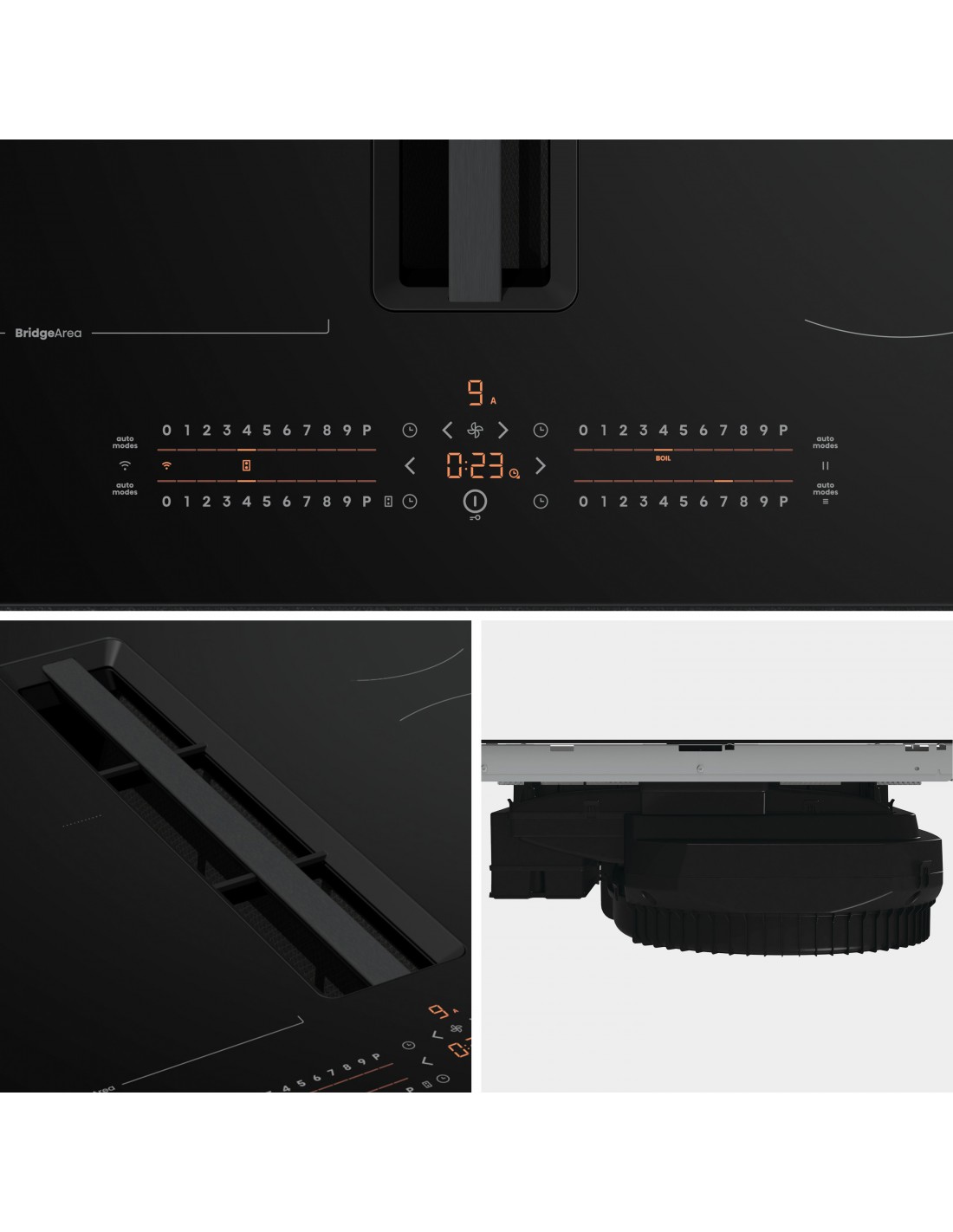 - Auto Start, Programmi automatici, Bridge Zone, Built-In Extractor, Blocco bambini, Facile da pulire, Filter Indication, Flexible Zones, Gentle Heat Technology, Insta Detect, Intuitive Slider Control, Keep Warm Function, Pan Detection