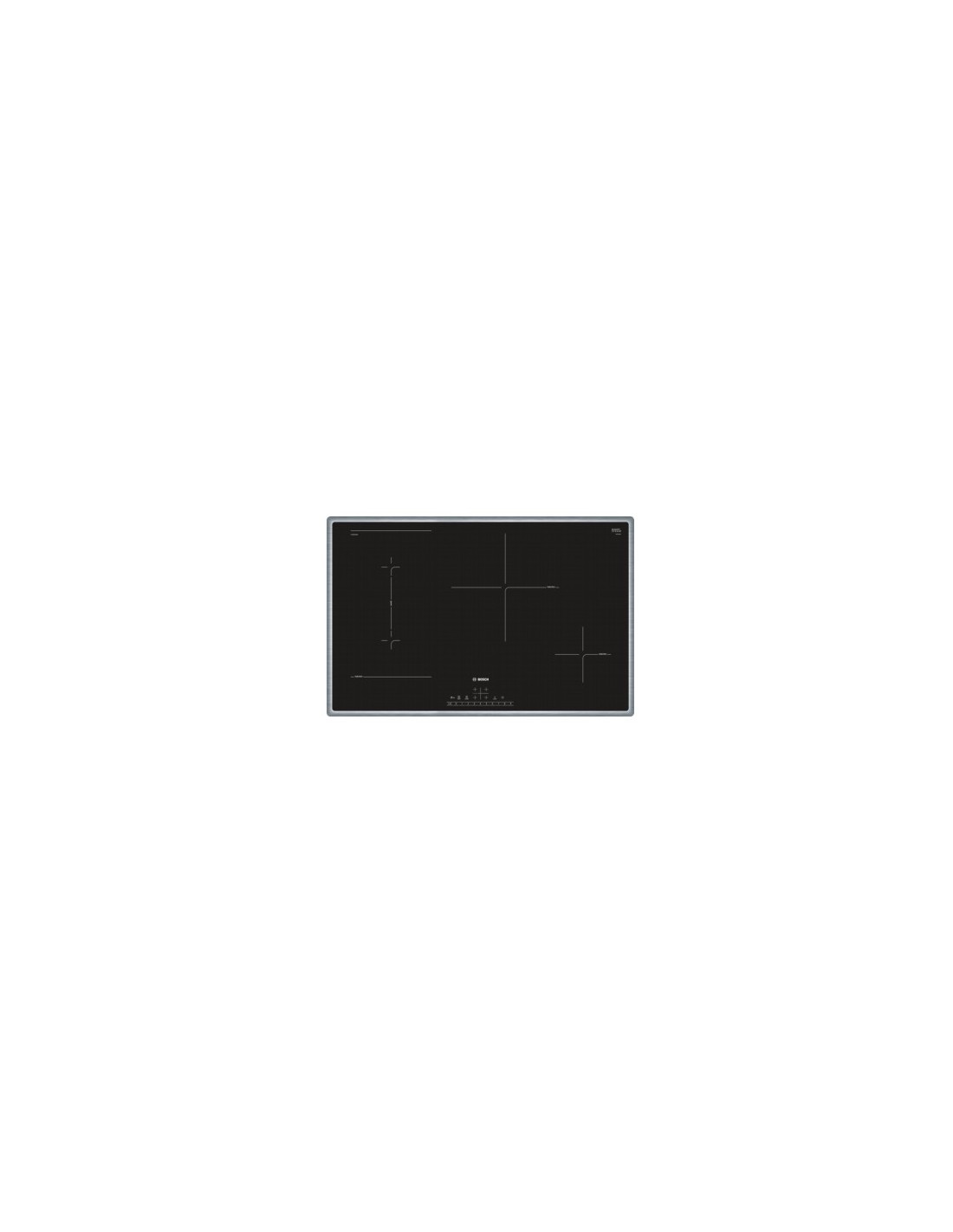 Bosch PVS845FB5E. Colore del prodotto: Nero, Acciaio inossidabile, Posizionamento dell'apparecchio: Da incasso, Tipo di piano cottura: Piano cottura a induzione. Bruciatore grande: 220 W, Certificazione: AENOR, CE. Tipo di controllo: Touch, Posizione di controllo: Frontale superiore, Tipo di timer: Digitale. Potenza aggregata (elettrica): 7400 W, Tensione di ingresso AC: 220 - 240 V, Frequenza di ingresso AC: 50 / 60 Hz. Larghezza: 795 mm, Profondità: 517 mm, Altezza: 55 mm
