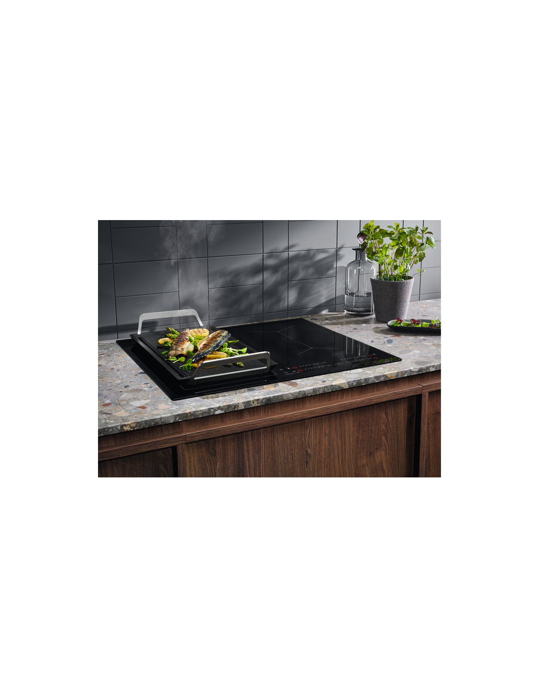 Il piano cottura a induzione Electrolux KIS62449 offre una serie di funzioni intelligenti che migliorano ulteriormente l'esperienza di cottura. La funzione Hob²Hood consente la sincronizzazione con la cappa aspirante, regolando automaticamente la potenza di aspirazione in base alla cottura. Inoltre, la funzione di controllo dell'ebollizione e il bridge cooking permettono di unire due zone di cottura per pentole più grandi, aumentando la flessibilità durante la preparazione dei pasti. Con un totale di 14 livelli di energia, il KIS62449 si adatta perfettamente a qualsiasi esigenza culinaria.