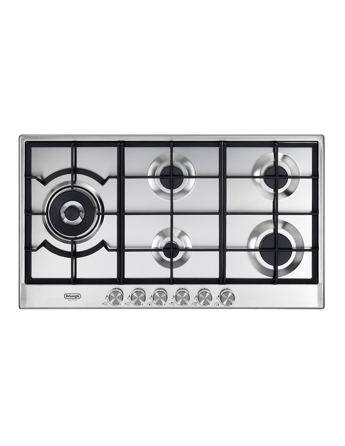 Piano Cottura Gas DE LONGHI NSL590DX. Dimensione della larghezza del piano cottura 90 cm. Tipo di superficie superiore Acciaio inossidabile. Numero totale elementi piano cottura 5 Fornelli. Tipo di controllo Manopola