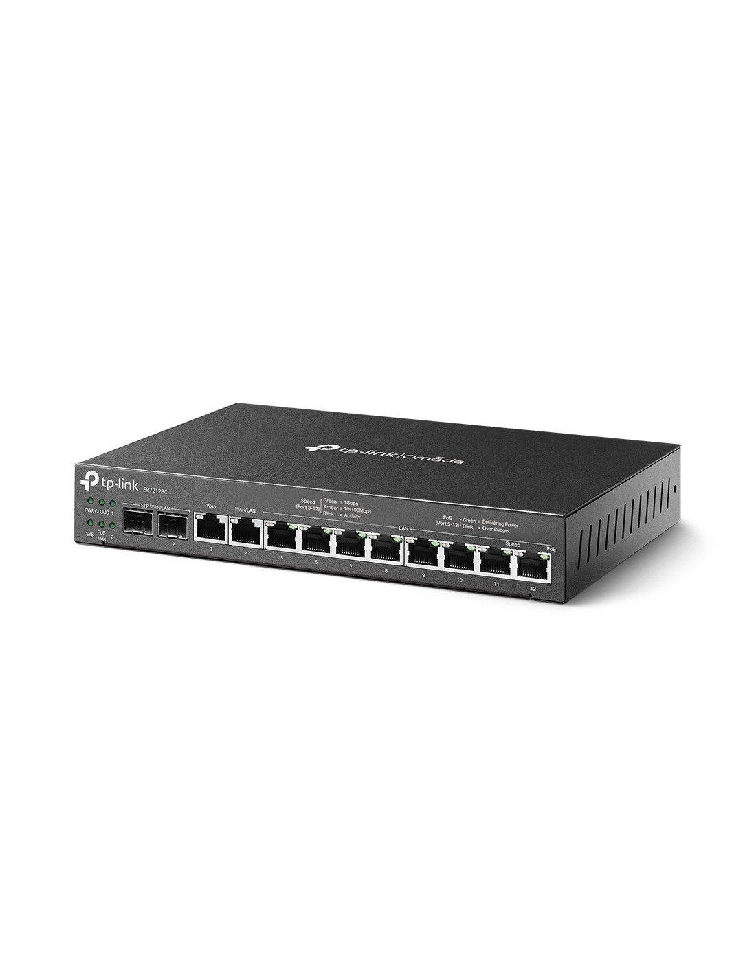 TP-Link Omada ER7212PC. Standard di rete: IEEE 802.1Q, IEEE 802.3, IEEE 802.3ab, IEEE 802.3u, IEEE 802.3x, IEEE 802.3z, Tipo di interfaccia Ethernet: Gigabit Ethernet, Tecnologia di cablaggio: 10/100/1000Base-T(X). Protocolli supportati: TCP/IP, DHCP, ICMP, NAT, PPPoE, NTP, HTTP, HTTPS, DNS, IPSec, PPTP, L2TP, SNMP. Funzionalità NAT: Multi-Net NAT; Virtual Server; NAT-DMZ; FTP/H.323/SIP/IPSec/PPTP ALG; UPnP;. Frequenza del processore: 1200 MHz, Memoria flash: 4096 MB, RAM installata: 1024 MB. Colore del prodotto: Nero, Materiale della scocca: Metallo
