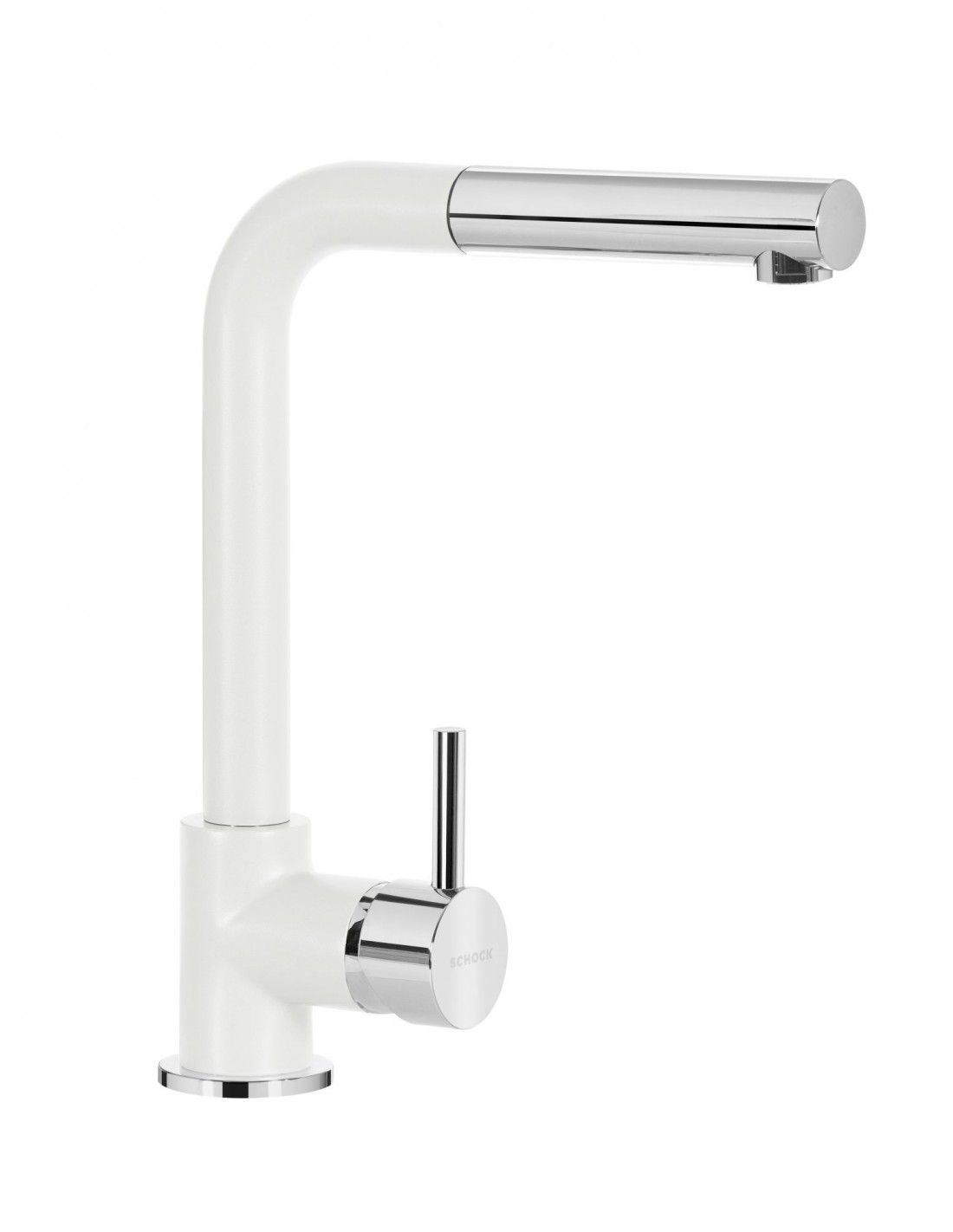 Schock Aquaviva. Tipo di beccuccio: Estraibile, Colore del prodotto: Cromo, Bianco, Controllo del flusso d'acqua: Leva sanitaria. Altezza (max): 32 cm, Distanza tra foro di fissaggio e diffusore acqua: 24 cm, Distanza diffusore dell'acqua e superficie di fissaggio: 28,5 cm