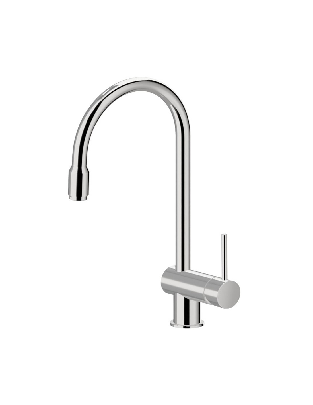 Miscelatore monocomando per lavello con bocca tonda in tubolare girevole e doccia estraibile