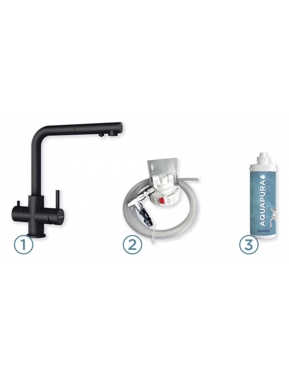 Schock SXPUR3BKN. Tipo di beccuccio: Standard, Colore del prodotto: Nero, Controllo del flusso d'acqua: Joystick. Distanza tra foro di fissaggio e diffusore acqua: 23,9 cm, Distanza diffusore dell'acqua e superficie di fissaggio: 25,5 cm, Distanza parte più alta della canna e piano di fissaggio: 29,4 cm