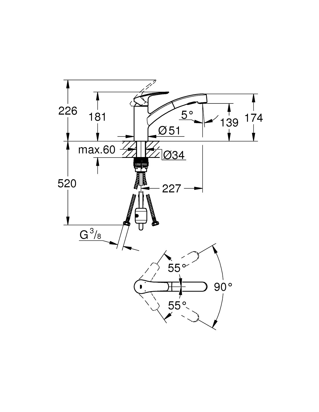 Affronta le incombenze in cucina contando su un rubinetto facile da installare e dalle eccellenti prestazioni: il miscelatore monocomando per lavello GROHE Eurosmart. GROHE Eurosmart è un classico del design per la cucina, ora rinnovato e ripensato con un sottile profilo moderno, per un comfort dell’utente ancora maggiore. Progettato per installazione monoforo, questo rubinetto è dotato di bocca bassa e doccetta estraibile a due getti, per garantire la massima flessibilità al lavello quando si preparano verdure o si lavano pentole. Basta toccare un pulsante per passare dal getto laminare senza schizzi all’energico Jet. Alla chiusura, il rubinetto torna automaticamente al getto laminare. La bocca ruota fluidamente di 90° per una maggior comodità anche negli spazi ristretti. Il miscelatore comprende una tecnologia con cartuccia GROHE SilkMove che garantisce precisione di controllo e fluidità di azionamento per l’intera vita utile del rubinetto. I canali interni isolati GROHE Zero mantengono l’acqua erogata dal rubinetto esente da piombo e nickel. Un limitatore di flusso regolabile fa risparmiare acqua e denaro e assicura consumi sostenibili, mentre un limitatore di temperatura integrato aiuta a prevenire le scottature. La resistente finitura GROHE StarLight (cromo) è antigraffio e mantiene nel tempo tutta la brillantezza originale. Il set GROHE FastFixation Plus rende l’installazione del miscelatore per la cucina facile e veloce, senza necessità di ricorrere a utensili. Per questo rubinetto è richiesta una pressione minima di 1,0 bar.