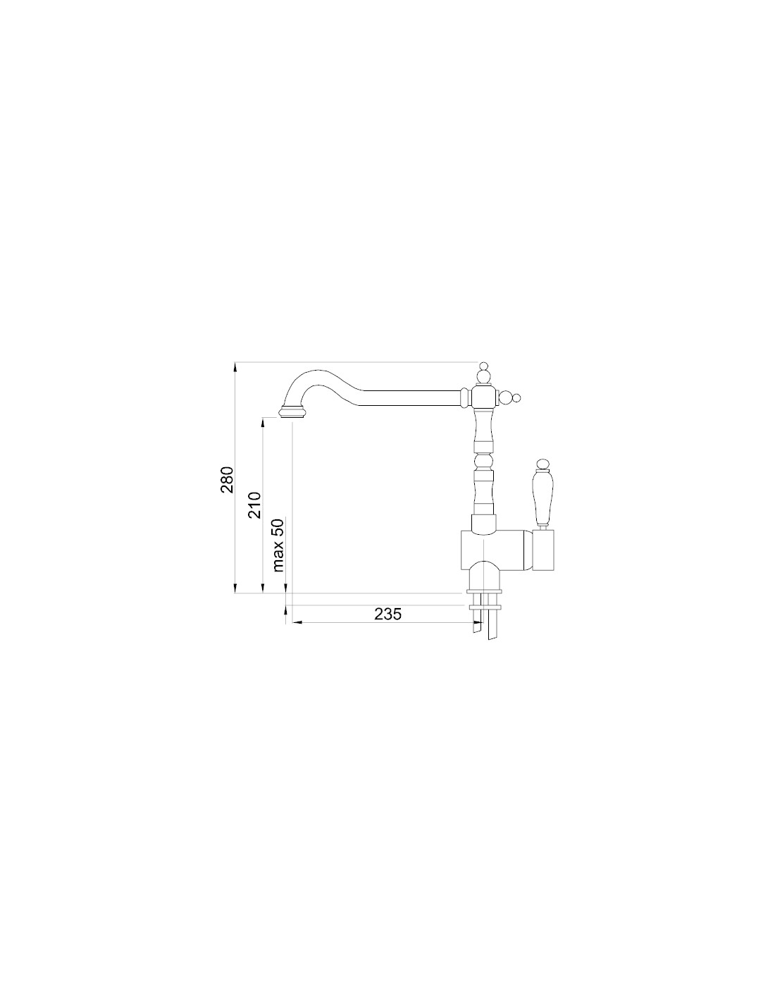 - Distanza parte più alta della canna e piano di fissaggio