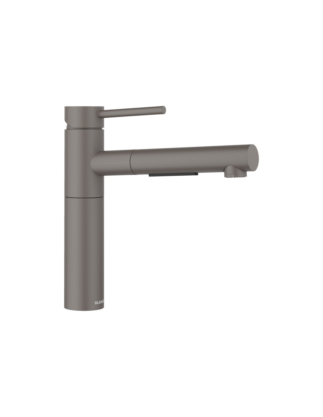 BLANCO ALTA-S II. Tipo di beccuccio: Estraibile, Colore del prodotto: Grigio, Materiale del rubinetto: Silgranit. Altezza sopra la superficie di fissaggio (max): 22,6 cm, Distanza tra foro di fissaggio e diffusore acqua: 18,6 cm, Diametro sopra la superficie di fissaggio: 4,5 cm