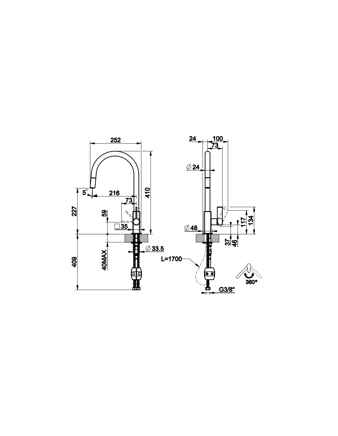 Miscelatore lavello girevole con doccetta estraibile monogetto.