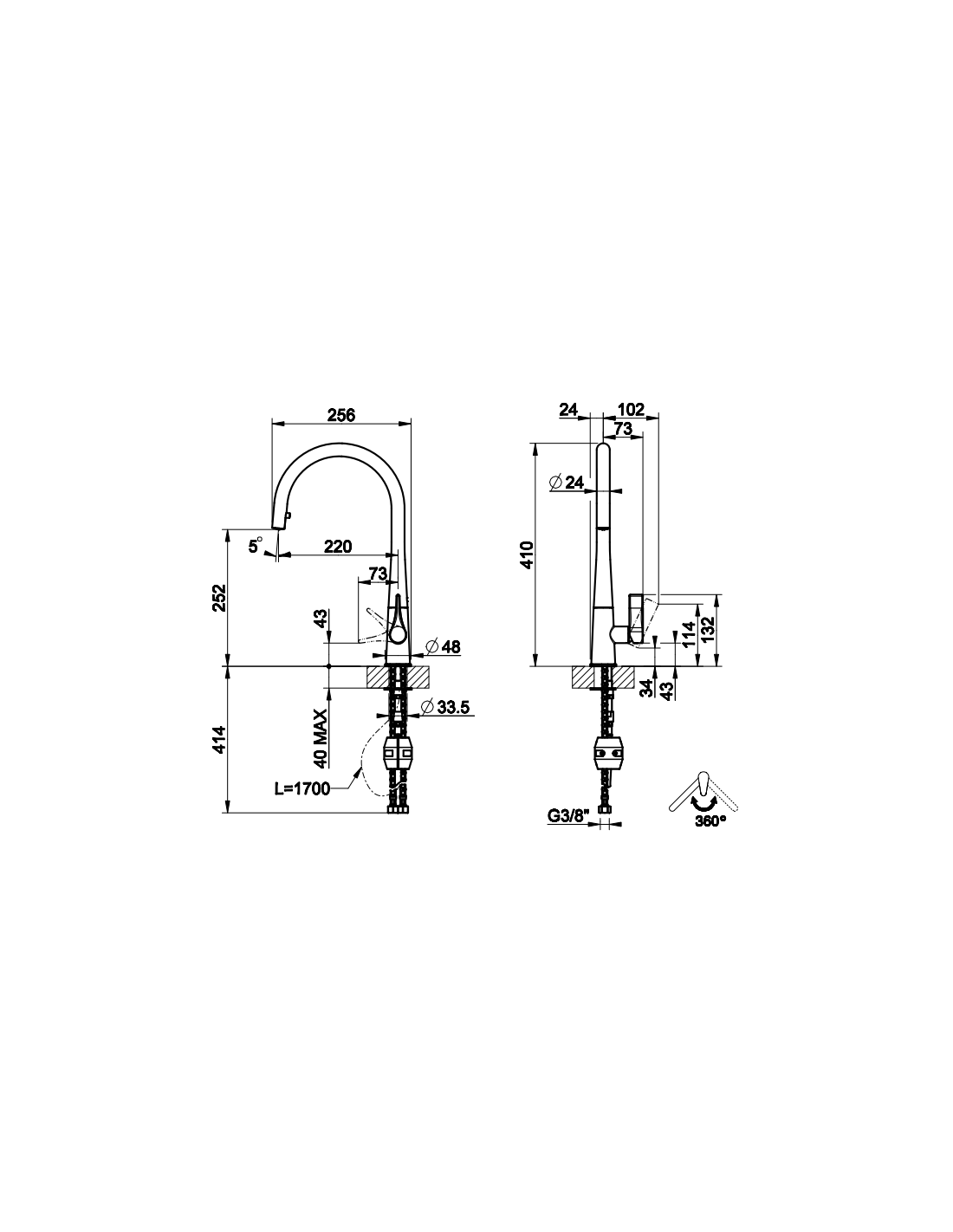 Miscelatore lavello girevole con doccetta estraibile monogetto.