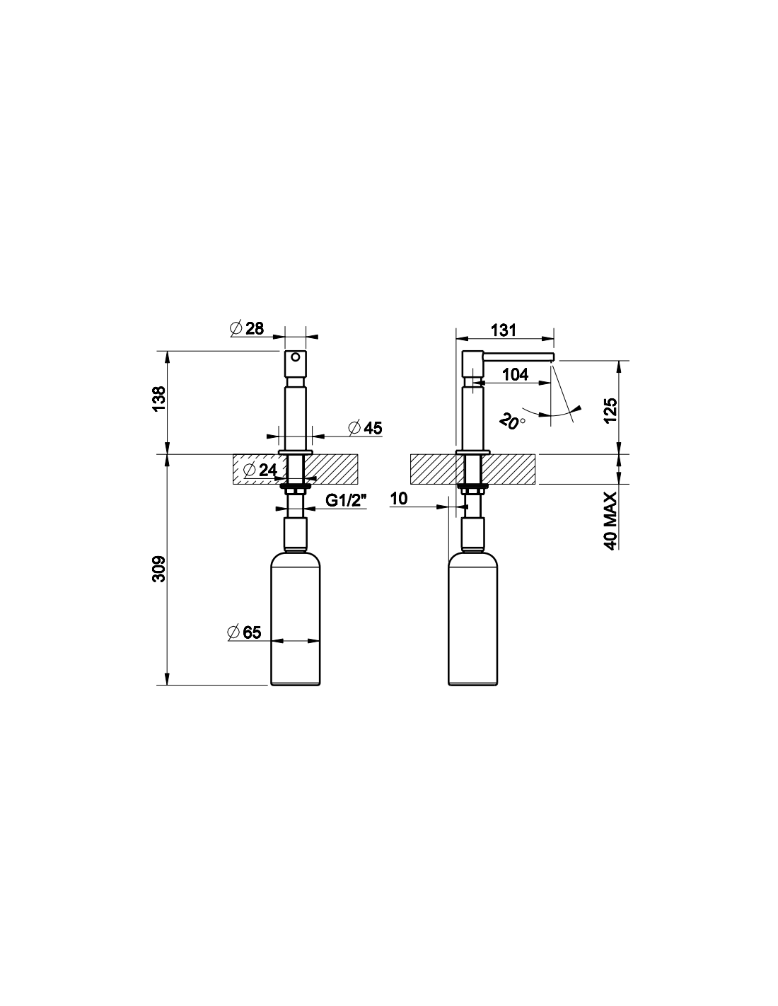 - Altezza sotto la superficie di fissaggio
