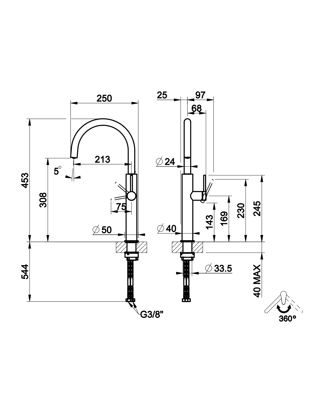 Distanza tra foro di fissaggio e diffusore acqua | 21,3 cm |