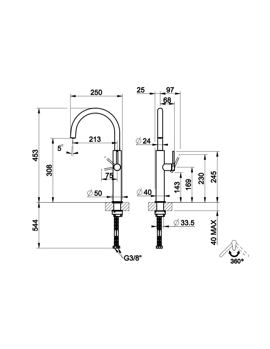 Distanza tra foro di fissaggio e diffusore acqua | 21,3 cm |