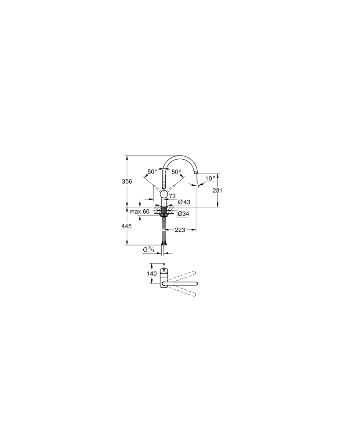 GROHE Minta. Tipo di beccuccio: Estraibile, Colore del prodotto: Acciaio spazzolato, Rose Gold, Controllo del flusso d'acqua: Leva sanitaria. Altezza sopra la superficie di fissaggio (max): 35,6 cm, Distanza tra foro di fissaggio e diffusore acqua: 22,3 cm, Distanza diffusore dell'acqua e superficie di fissaggio: 23,1 cm