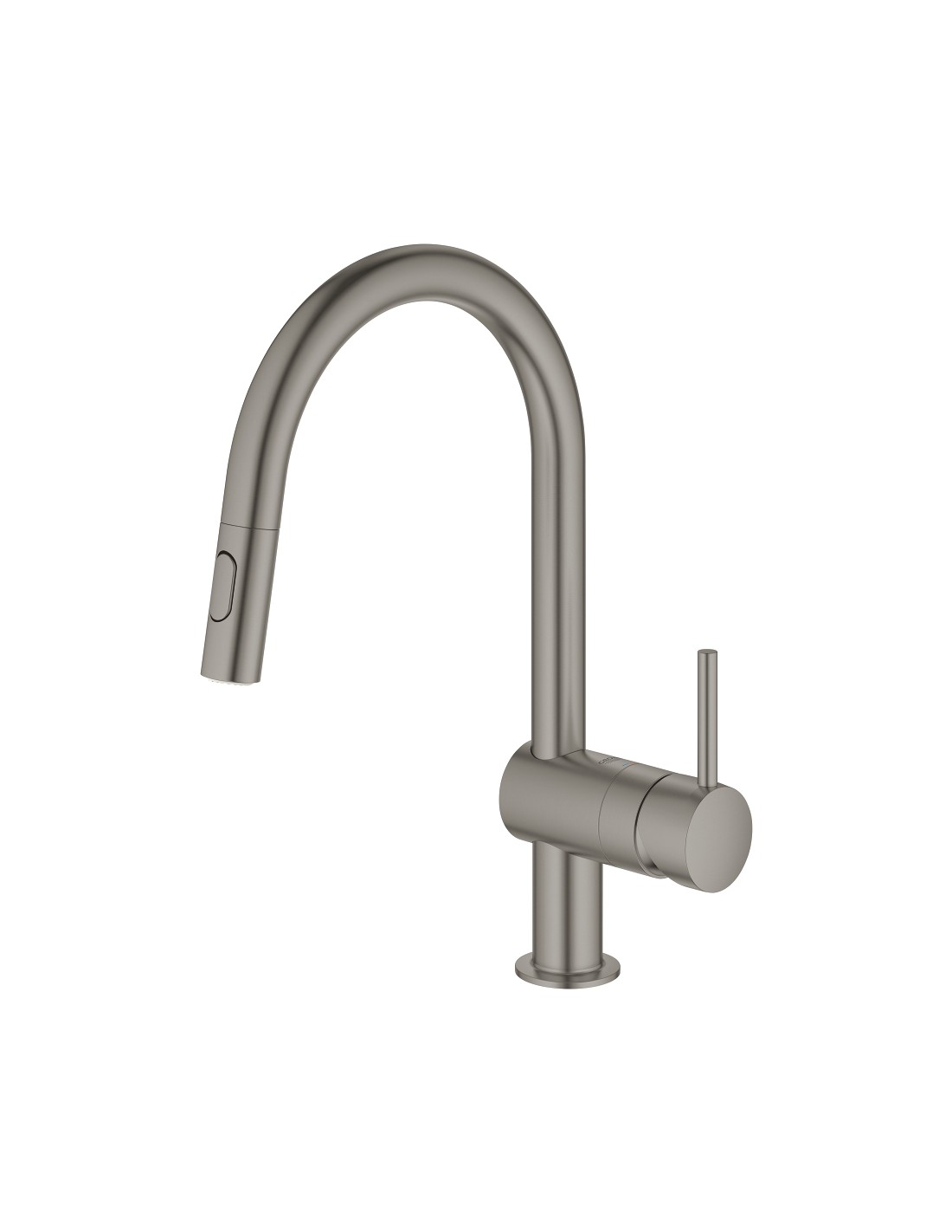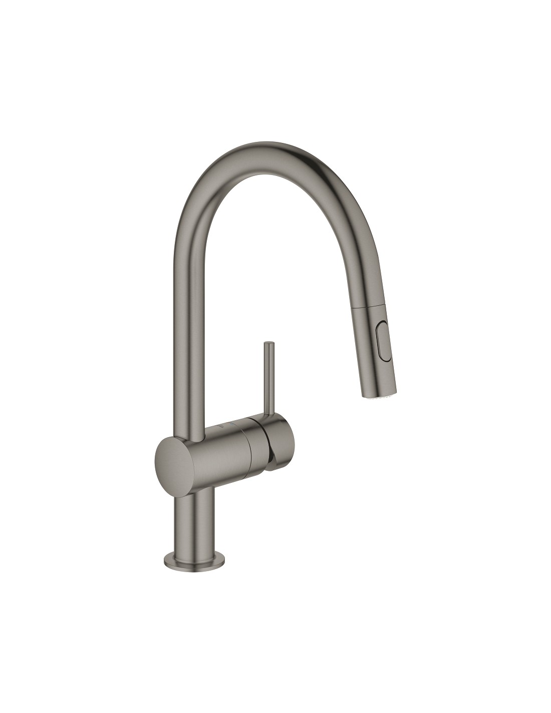 GROHE Minta. Tipo di beccuccio: Estraibile, Colore del prodotto: Grafite, Controllo del flusso d'acqua: Leva sanitaria. Altezza sopra la superficie di fissaggio (max): 37,9 cm, Distanza tra foro di fissaggio e diffusore acqua: 22,3 cm, Distanza diffusore dell'acqua e superficie di fissaggio: 18,5 cm