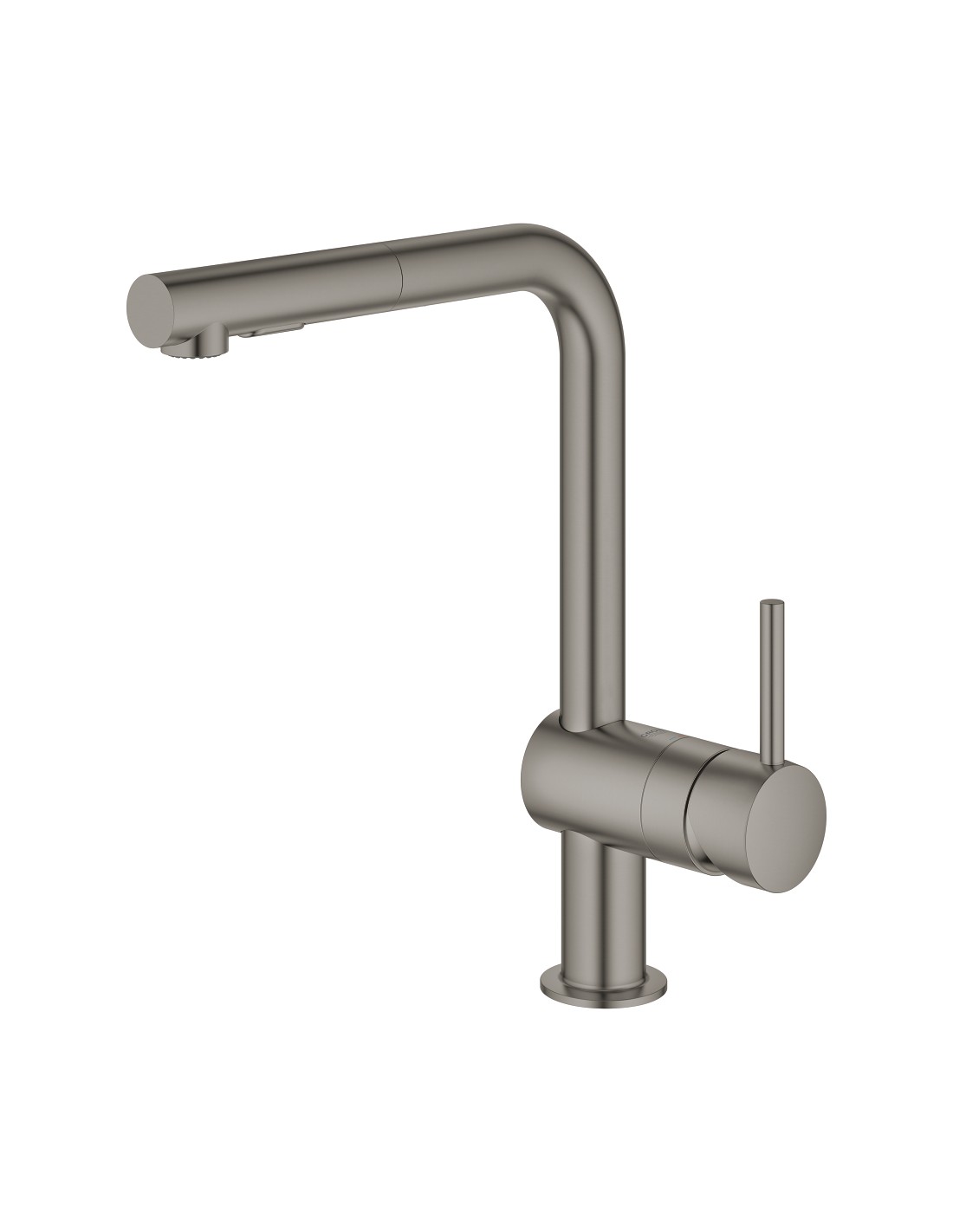 GROHE Minta. Tipo di beccuccio: Standard, Colore del prodotto: Acciaio spazzolato, Grafite, Controllo del flusso d'acqua: Leva sanitaria. Altezza sopra la superficie di fissaggio (max): 32,8 cm, Distanza tra foro di fissaggio e diffusore acqua: 22,3 cm, Distanza diffusore dell'acqua e superficie di fissaggio: 29,5 cm