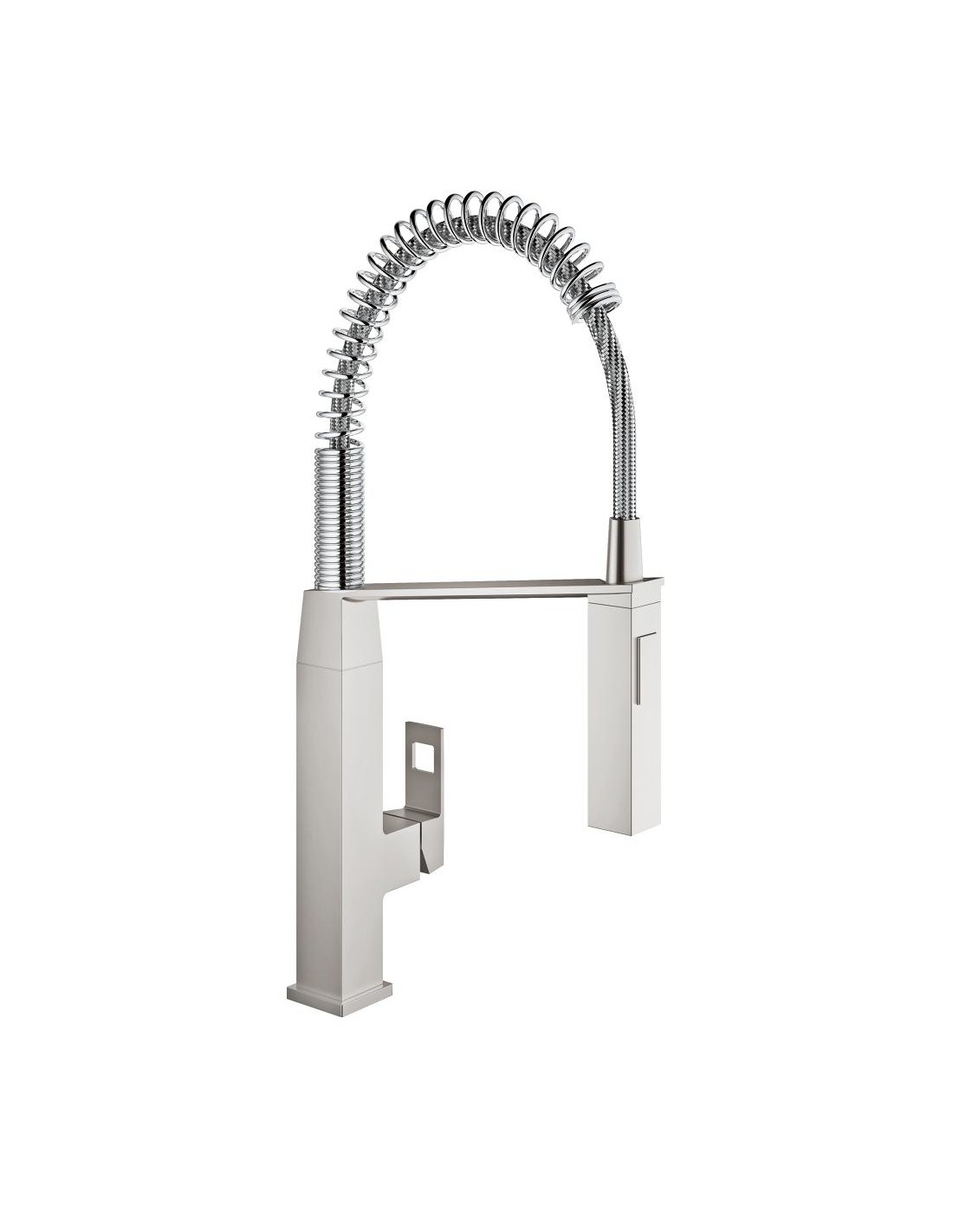 Gli appassionati chef di casa e gli indaffarati cuochi di famiglia hanno un’esigenza comune: poter contare su strumenti che siano alla loro altezza. GROHE Eurocube Professional è il rubinetto perfetto per le esigenti cucine moderne, con utili funzionalità e uno straordinario look contemporaneo. Il rubinetto è dotato di una doccetta professionale a molla con un raggio di rotazione di 360°. Per un raggio di azione e una flessibilità maggiori dispone anche di una doccetta estraibile con un getto fine e uno potente, perfetta per sciacquare la verdura e pulire, ma anche per servire un doppio lavello. All’interno, la tecnologia della cartuccia GROHE SilkMove garantisce fluidità di movimento e un controllo del flusso e della temperatura dell’acqua di precisione per l’intera vita del prodotto. Grazie al sistema di installazione agevolata, la messa in opera del rubinetto è semplice e immediata. Inoltre, la brillante finitura GROHE StarLight in acciaio inossidabile è antigraffio e conserverà il suo aspetto originale per molti anni. Il vivace stile architettonico del rubinetto apporta un tocco industriale a qualsiasi cucina moderna.