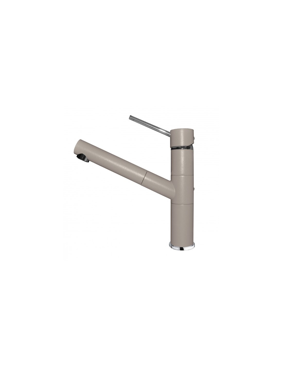 Miscelatore monocomando con canna girevole e doccetta estraibile.