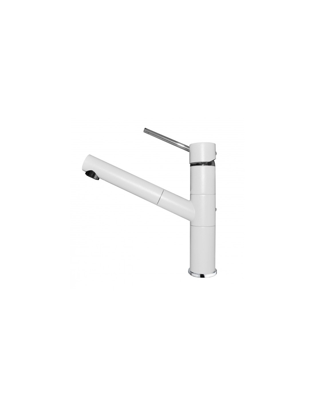 Miscelatore monocomando con canna girevole e doccetta estraibile.