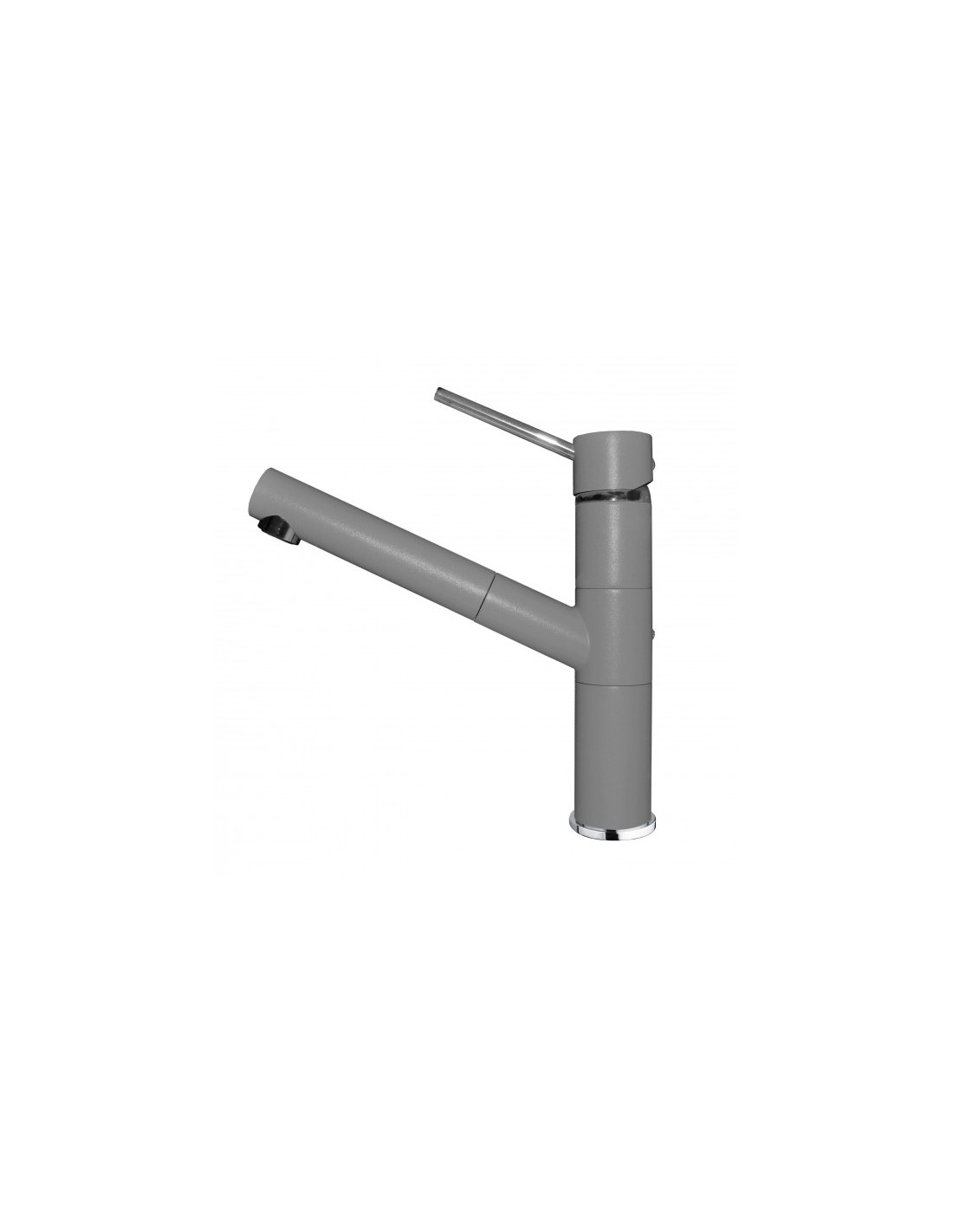 Miscelatore monocomando con canna girevole e doccetta estraibile.
