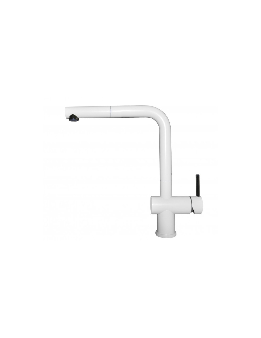 Miscelatore monocomando con canna girevole e doccetta estraibile.