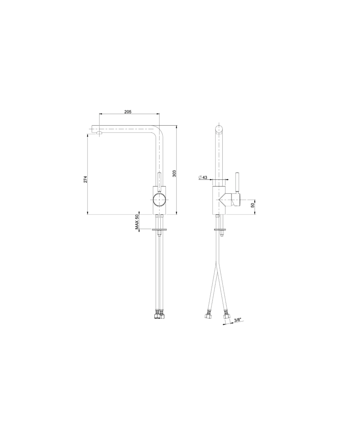 | Distanza tra foro di fissaggio e diffusore acqua | 20,5 cm |